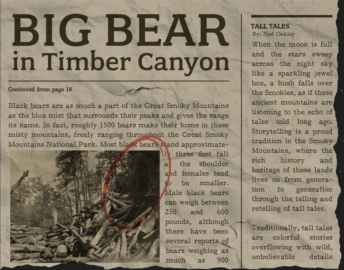Set in the Wildwood Grove area of the park, the story begins with the legendary sighting of a “Big Bear" from March 10, 1943 (more on that date later). Bear expert Ned Oakley is organizing a search for the massive bear that is “rumored to be both fierce and two times - no, five times - as large as an ordinary bear." Oakley also takes guests on expeditions into the rugged wilderness outside the grove to look for bears, and is starting to think this legend is true. Locals can hear loud roars echoing through the forest, and other evidence has been spotted like footprints and scratch marks, so Oakley is having everyone come out to Ned’s Smoky Mountain Adventure Outpost for an off-road expedition to find Big Bear.