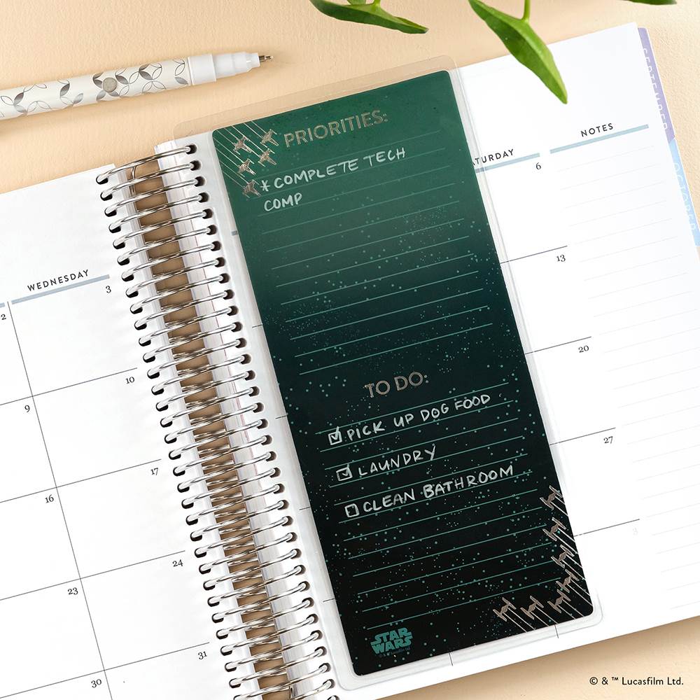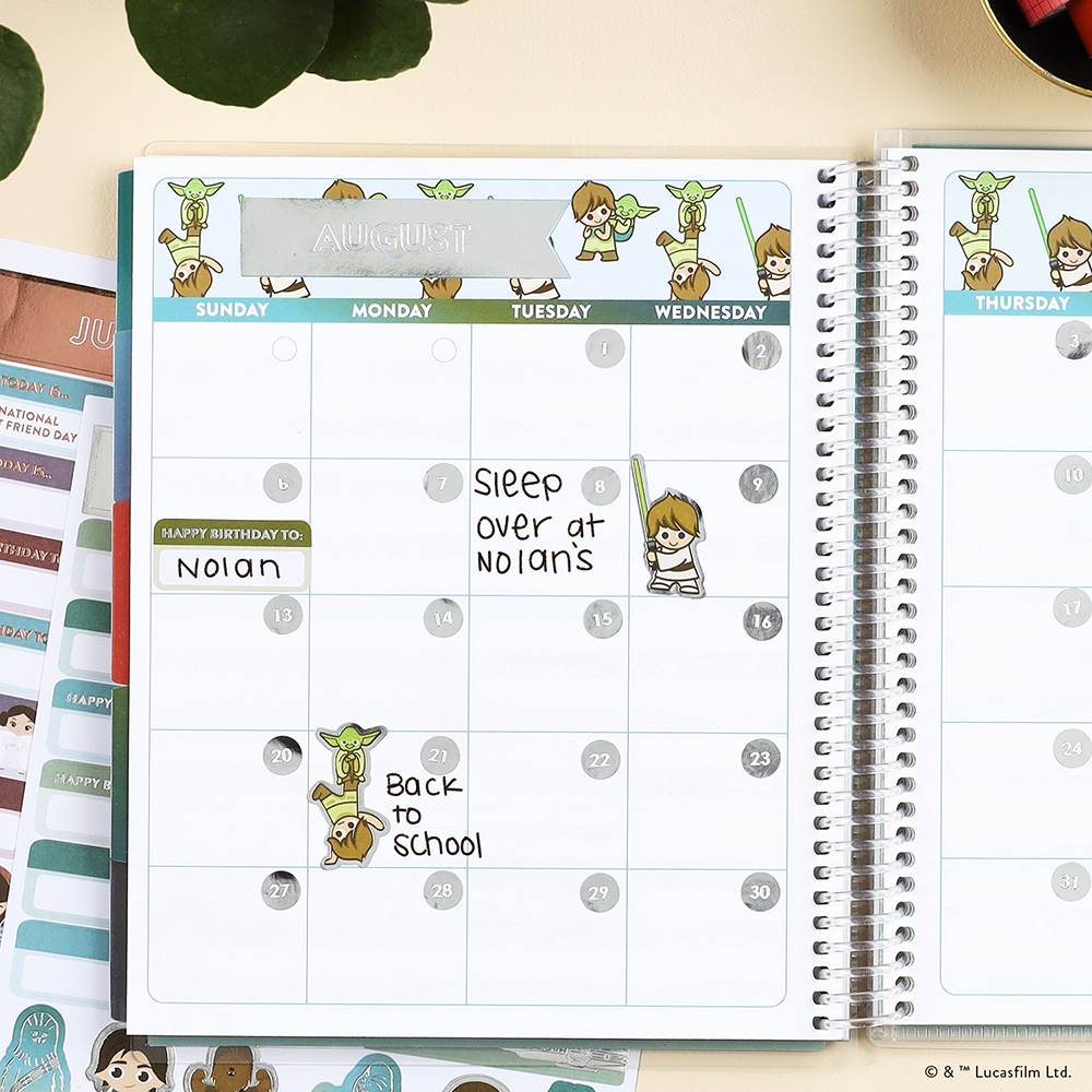Star Wars Kids Planner includes a monthly planning calendar along with pages to keep a reading log, goal tracking, daily routine for the month, and more encouraging organizational skills early. Their Handwriting & Story Journal offers younger writers a very special place to showcase their budding skills. The pages also offer a drawing space along with writing zones.