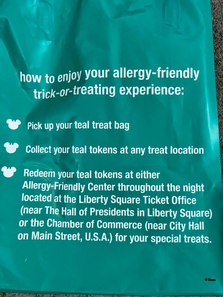 If you have an allergy when you walk in, they will give you an allergy bag. This will let cast members handing out candy know that you are not able to have the regular selection. Instead of candy, they will give you a little token. There were a couple of cast members that did not have the tokens and instead asked me what my allergy was, and when I said dairy, they gave me some Skittles and Starburst.