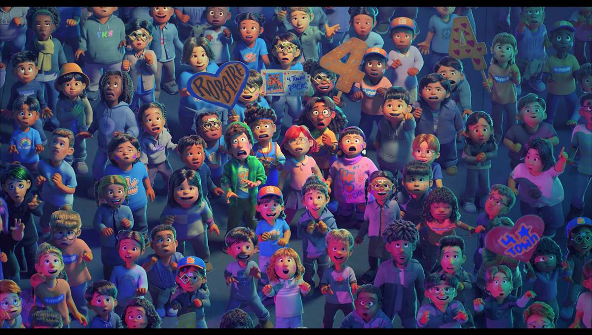 At SIGGRAPH 2022, we got to see how this new system was put to the test in a crucial moment in Turning Red, in a climactic moment during the headlining 4*Town concert that took place near the end of the film. Taking place in the early 2000’s, a boy band concert would surely draw a concert of tens of thousands of people. Pixar, known for their great level of detail and authenticity when telling a story, knew they had to include a crowd of this size.