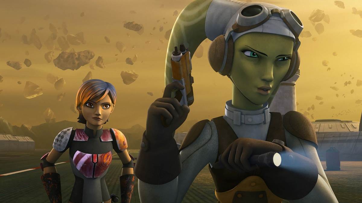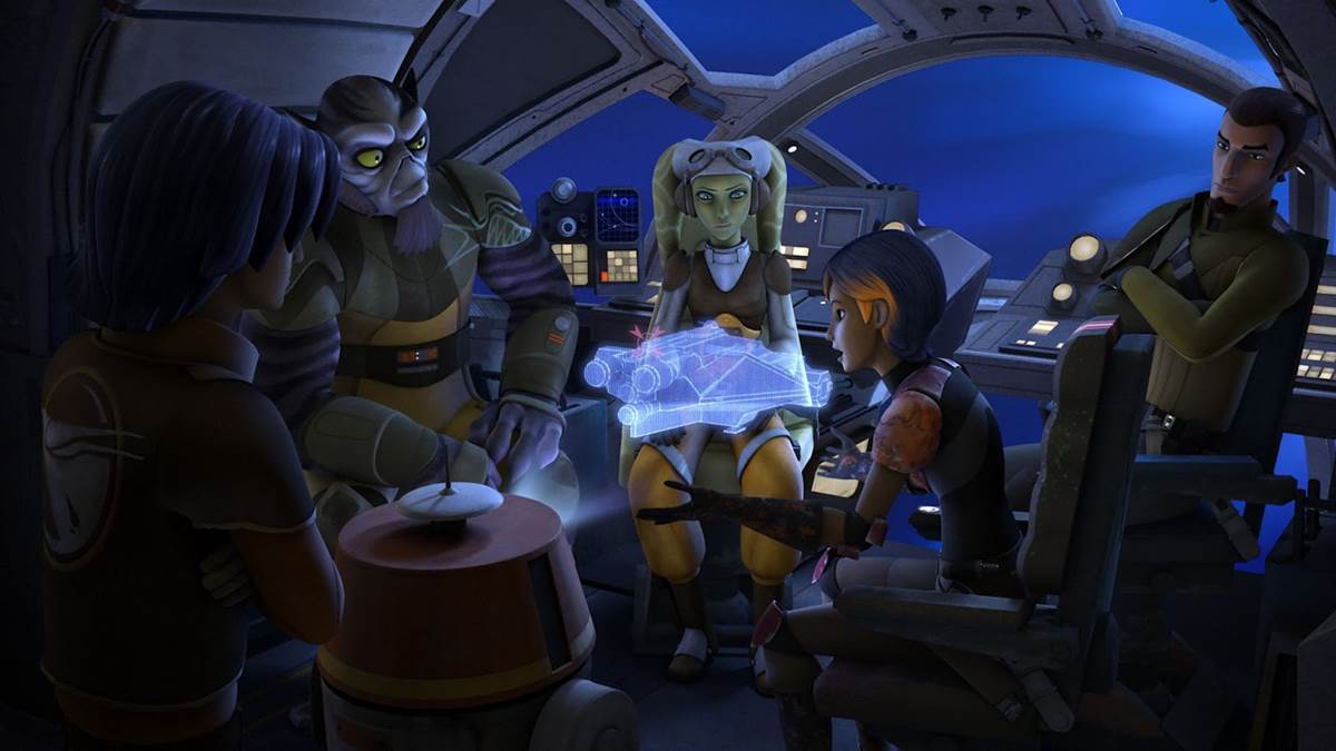 Episode 7: “Out of Darkness" - We are introduced via communicator to a covert rebel contact codenamed “Fulcrum," and Sabine insists on joining Hera for a mission to pick up supplies from this person. But after Ezra and Zeb botch a repair job on the Phantom (a shuttle that can attach to and separate from the Ghost when needed), Hera and Sabine become stranded on an asteroid populated by fearsome, bloodthirsty creatures. They’re eventually rescued by the rest of the crew, but not before Sabine learns to put trust in her superiors.
