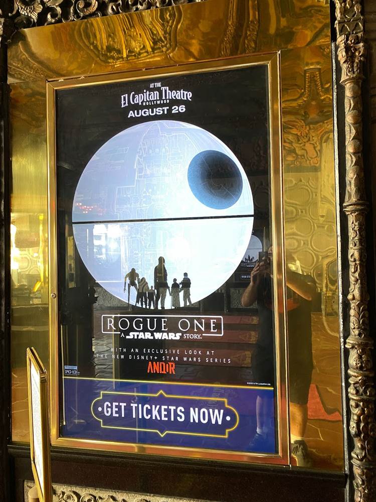 Last week we learned that the smash-hit 2016 film Rogue One: A Star Wars Story would be returning to Hollywood’s El Capitan Theatre for a week and a half, in addition to playing on select IMAX screens around the country. Rogue One originally played at El Capitan during its theatrical release, but has not made a return to this legendary movie house since that time– even during the theater’s Star Wars marathons, which have featured only the “Skywalker Saga" films (AKA Episodes I-IX).