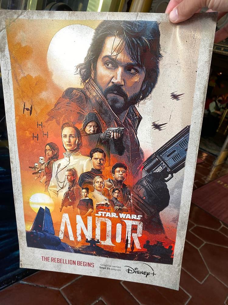 After this afternoon’s screening of Rogue One: A Star Wars Story, guests at the El Capitan Theatre received a complimentary mini-poster for Star Wars: Andor (available while supplies last).