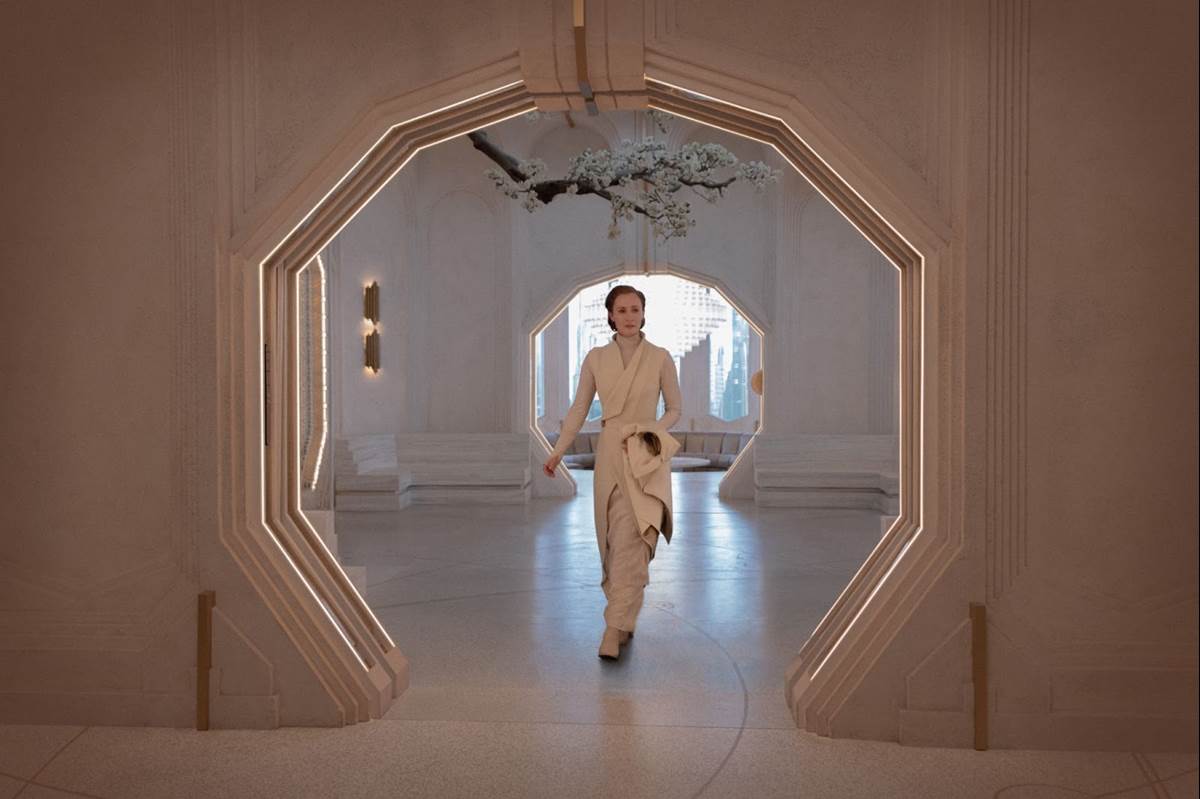 “I think the most exciting things about Mon Mothma [are] the bravery and where Tony has decided to begin. We meet Mon Mothma in a place we've never seen her before: we meet a woman steeped in Empire, navigating a very male-dominated Empire with a very powerful Emperor Palpatine at the top of it. Previously, in Rogue One or at other times, we've seen her surrounded by maybe people with different opinions, but with like-minded Rebels. We find her in Andor very alone, living in a world of orthodoxy and construct. We see a woman who has had to navigate her ideals and her beliefs within systems of oppression. And so we find her in a place we've never seen her before. We find her in a bit of a gilded cage. What I'm excited for is for us to travel that story with her– to journey with her as a woman and find her voice, reaching for voices that are fighting for similar things. Finding community, finding collaborators to be able to eventually be the leader that she becomes in Rogue One. There's a journey to travel and I'm excited for people to hop on that train with us."