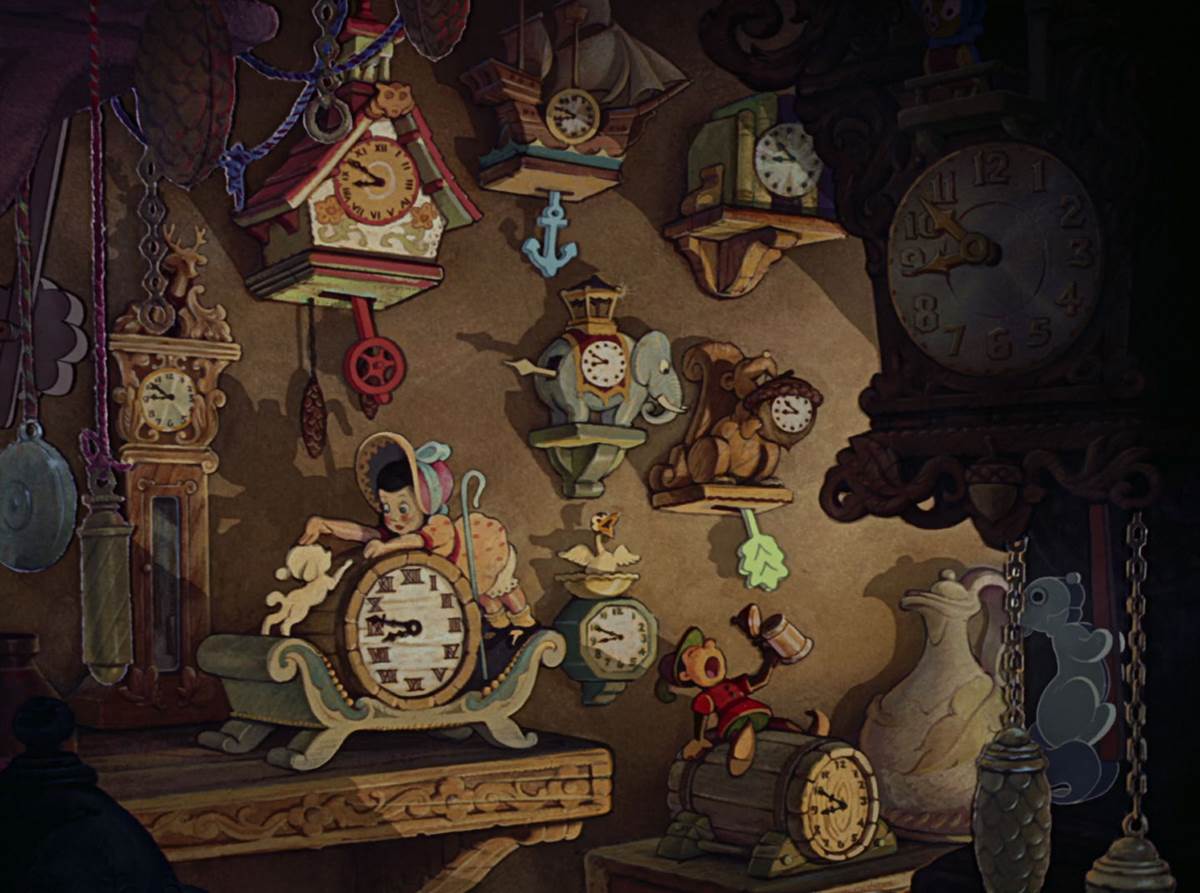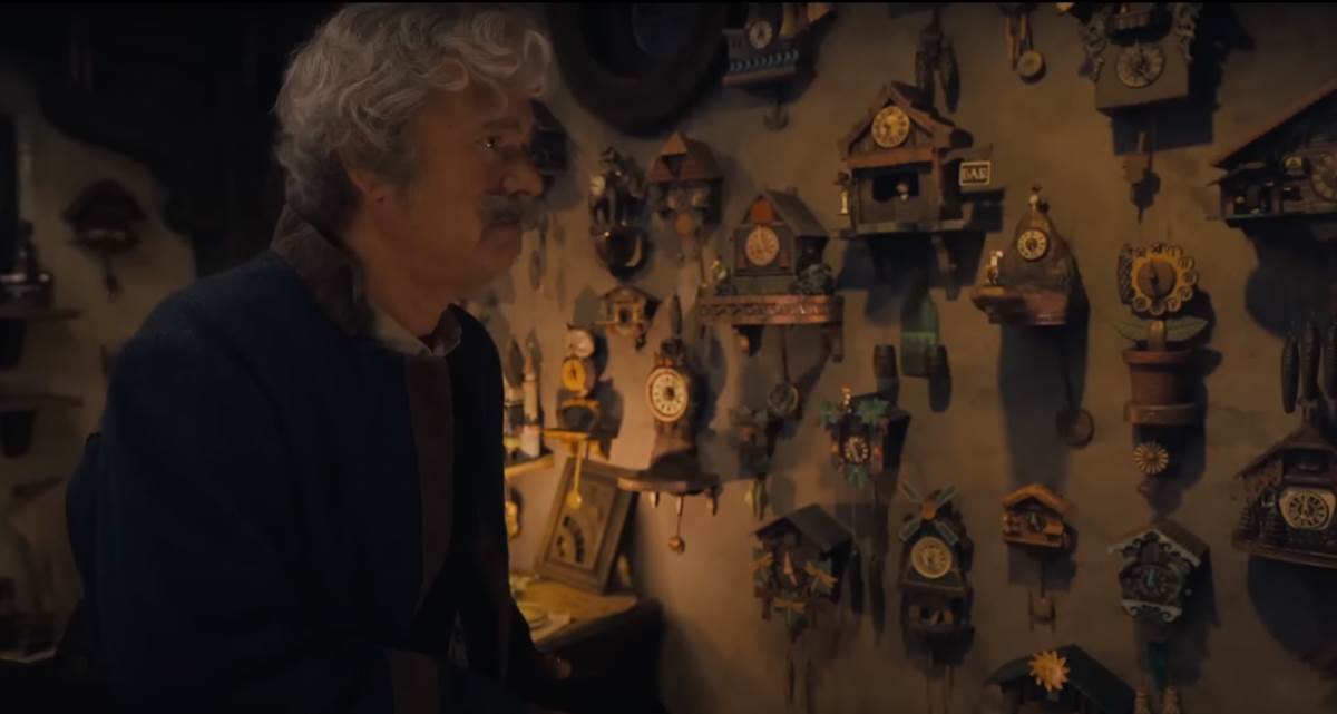 While the screengrab from the new film seems to take place when Geppetto is wondering where Pinocchio is at such a late hour, we are also treated to the visual feast of handmade cuckoo clocks and gizmos that adorn the walls of his home and workshop, which somehow immediately makes me want to ride Pinocchio’s Daring Journey at Disneyland Park.