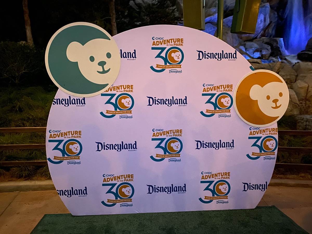 Photo ops were set up around Disney California Adventure for teams of CHOC Walkers to pose in front of, like this one at Grizzly Falls.