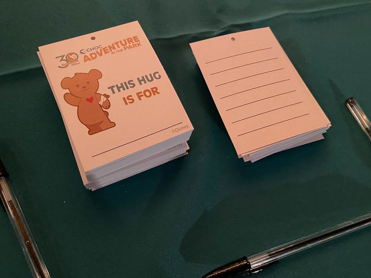 Attendees could fill out and hang these “hug" cards with messages for kids, to be posted later at the Children’s Hospital of Orange County.