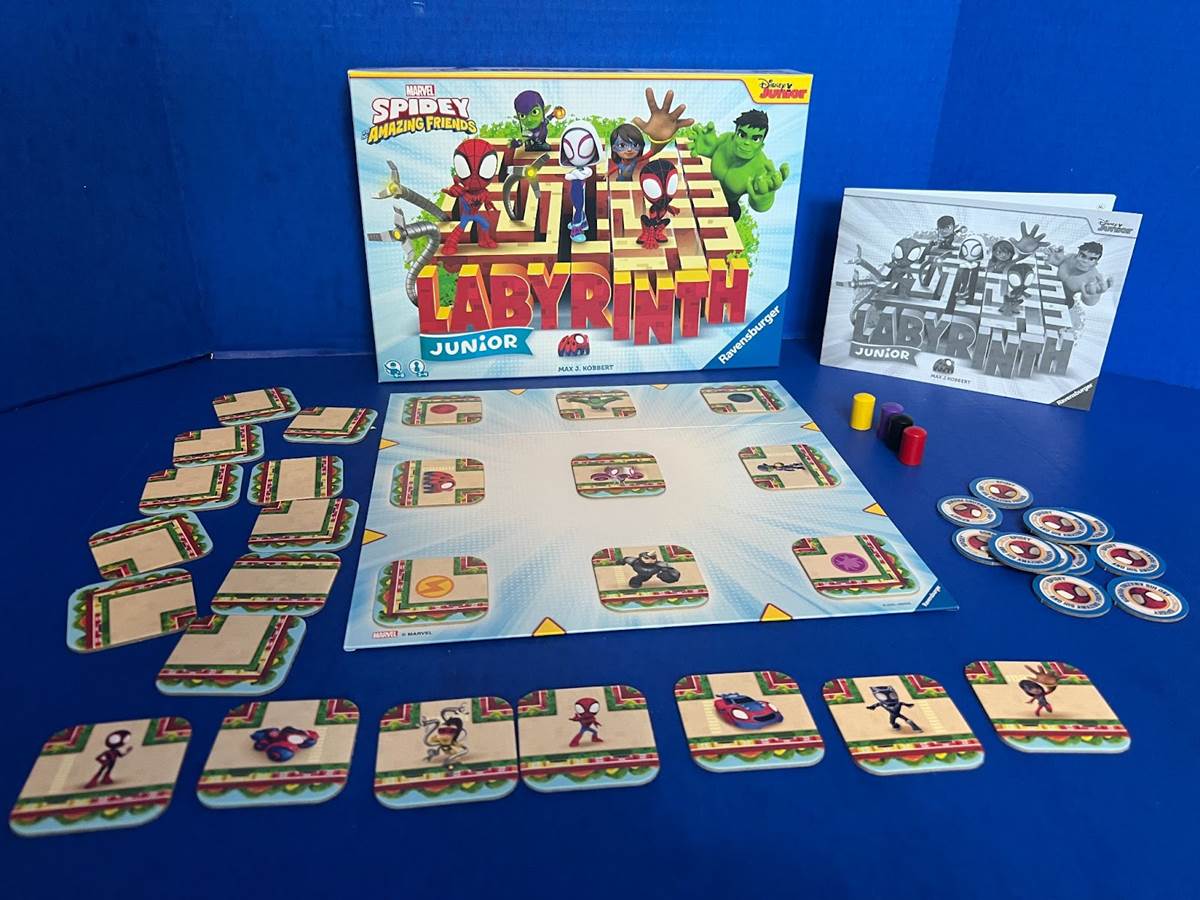 For younger players, a new version of Labyrinth Junior is now available themed to Marvel’s Spidey and his Amazing Friends. Aimed at ages 4 and up, the junior version of the game has a smaller board, which means there are less moves to make. There are also four double-sided tiles with optional cross-sections that make gameplay even easier. Like with Disney Villains Labyrinth, players pick a colored pawn and try to collect characters and vehicles that appear on chips.