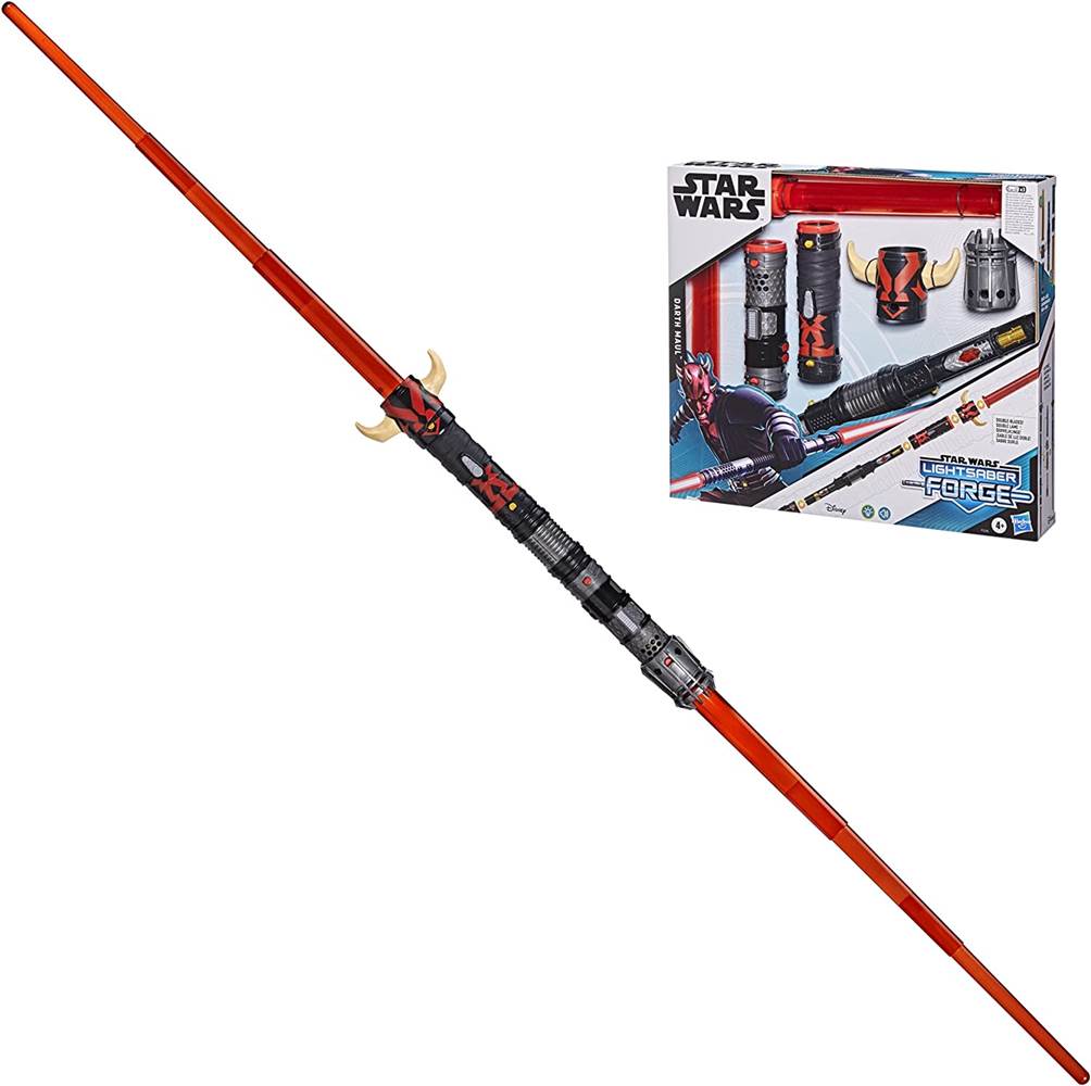 - Star Wars: Lightsaber Forge - Darth Maul (Masterworks Set) ($32.99) Features Darth Maul-inspired design and deco, so kids ages 4 and up can imagine epic pretend Lightsaber battles in the Star Wars Galaxy. The Lightsaber Forge Darth Maul electronic Lightsaber is comprised of seven parts -- two blades, two caps, two covers, and one core -- allowing kids to assemble their Lightsaber for imaginary duels. Featuring exciting electronic sound FX inspired by the Star Wars entertainment and 2 extendable light-up blades.