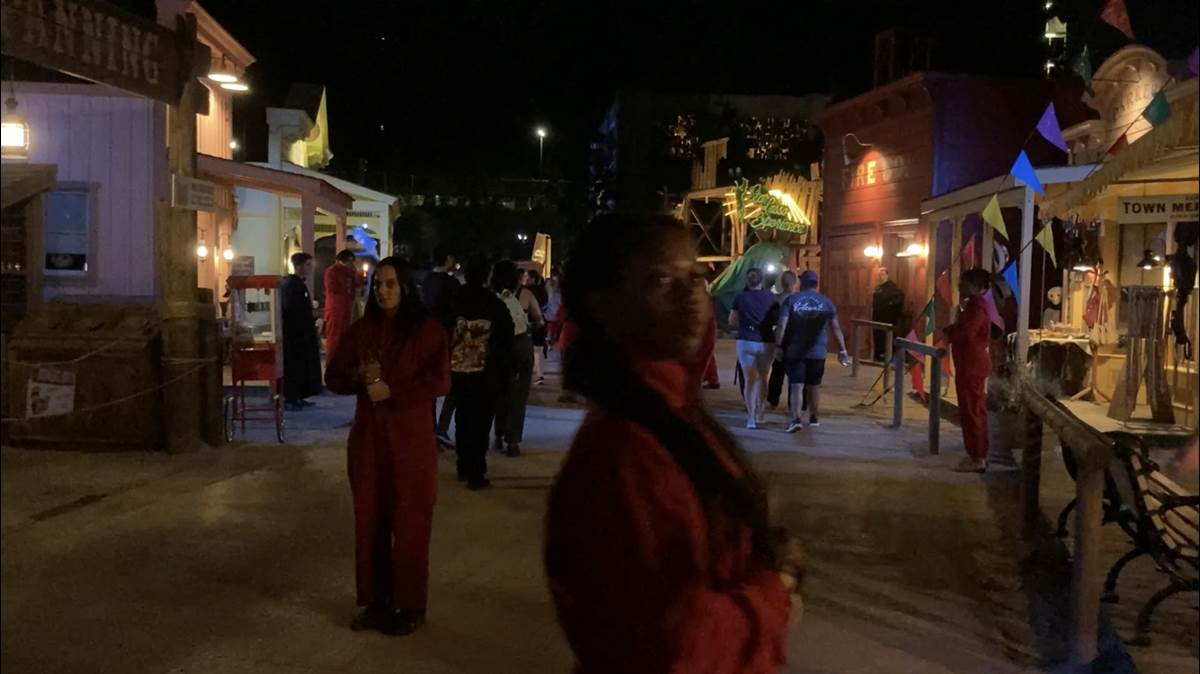 The last element I want to highlight from this year’s event is the Terror Tram. Those familiar with the world-famous experience will know what to expect for the beginning of the attraction. However, this year, guests get to step into Jupiter’s Claim and the set of Jordan Peele’s most recent horror film, Nope. But that’s not even it! The incredible set is then combined with Jordan Peele’s Us as the tethered wander the town and look to claim their next victims. It’s a perfect combination of these two films and it is incredibly creepy!