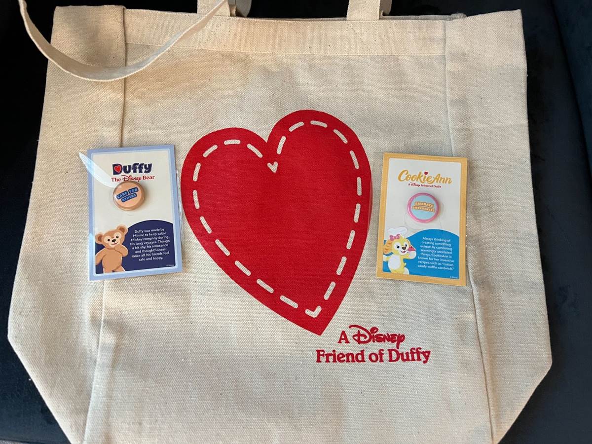 After stoppy by the stage to wave goodbye, D23 Expo attendees were given a reusable tote with a stitched heart that brands you as “A Disney Friend of Duffy." Each bag included two randomly selected buttons and almost instantly, attendees were trading for their favorites. After learning about their personalities, it was fitting that each button has the core value of their character on them. I traded for Duffy and CookieAnn, my two favorties in the line. “Care for Others" and “Embrace Differences."