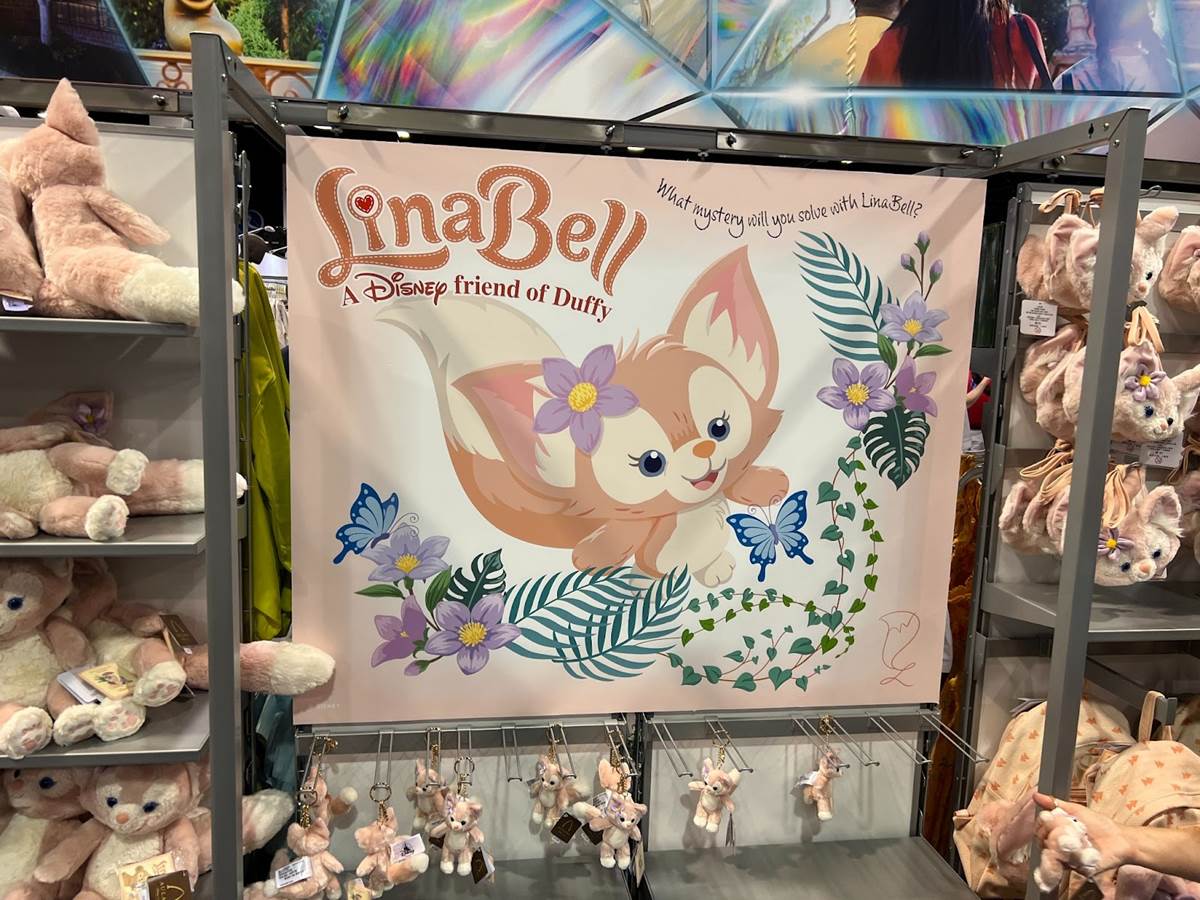 LinaBell’s launch in September 2021 at Shanghai Disneyland and was an instant sensation, with lines to bring a plush home stretching out of the park on her debut. She recently became available at Tokyo DisneySea and Hong Kong Disneyland where she has been greeted with a similar embrace. For D23 Expo attendees, she made her U.S. debut at the D23 Expo Marketplace before heading to Aulani, a Disney Resort & Spa. In addition to plush, Expo attendees could bring home a keychain, purse, and backpack with Duffy’s newest friend on them.