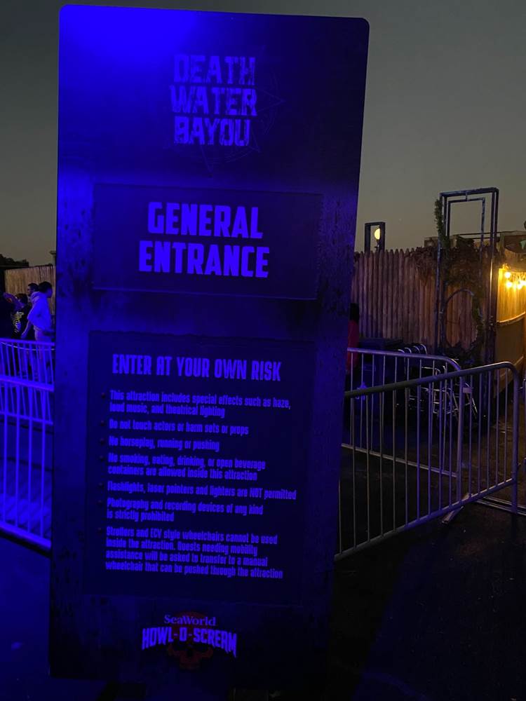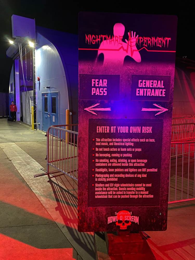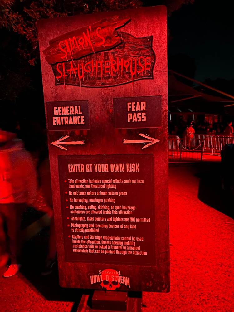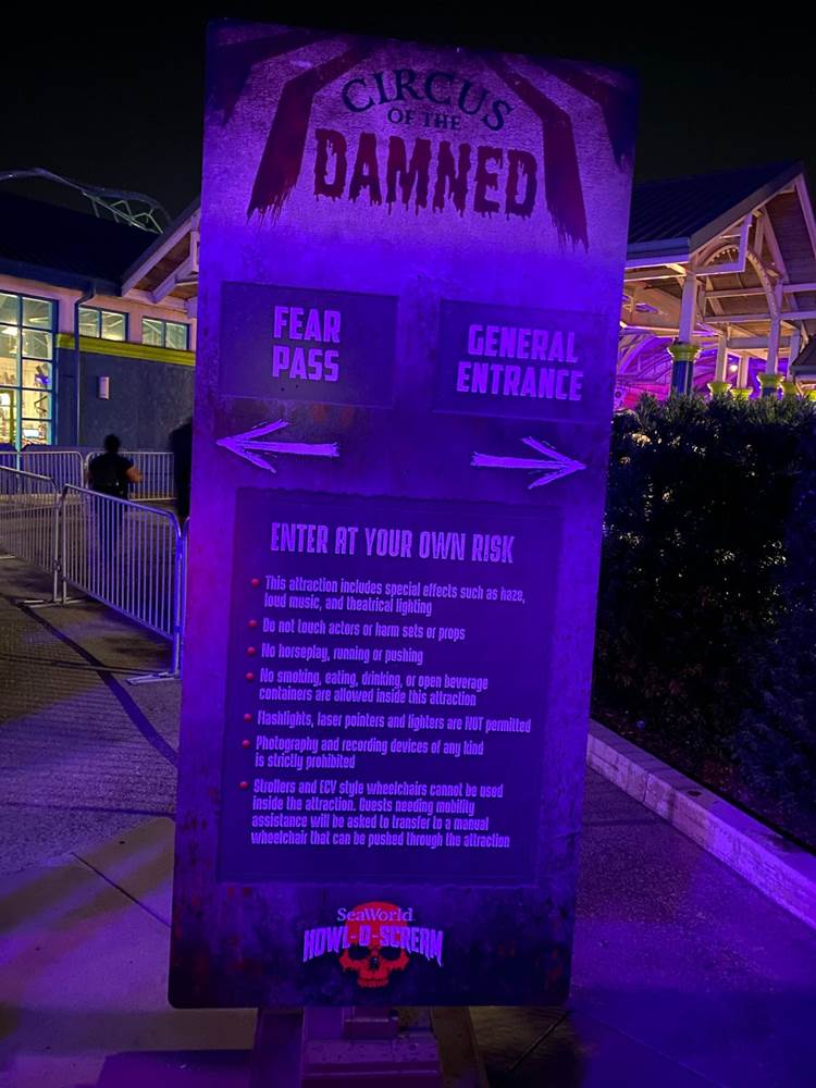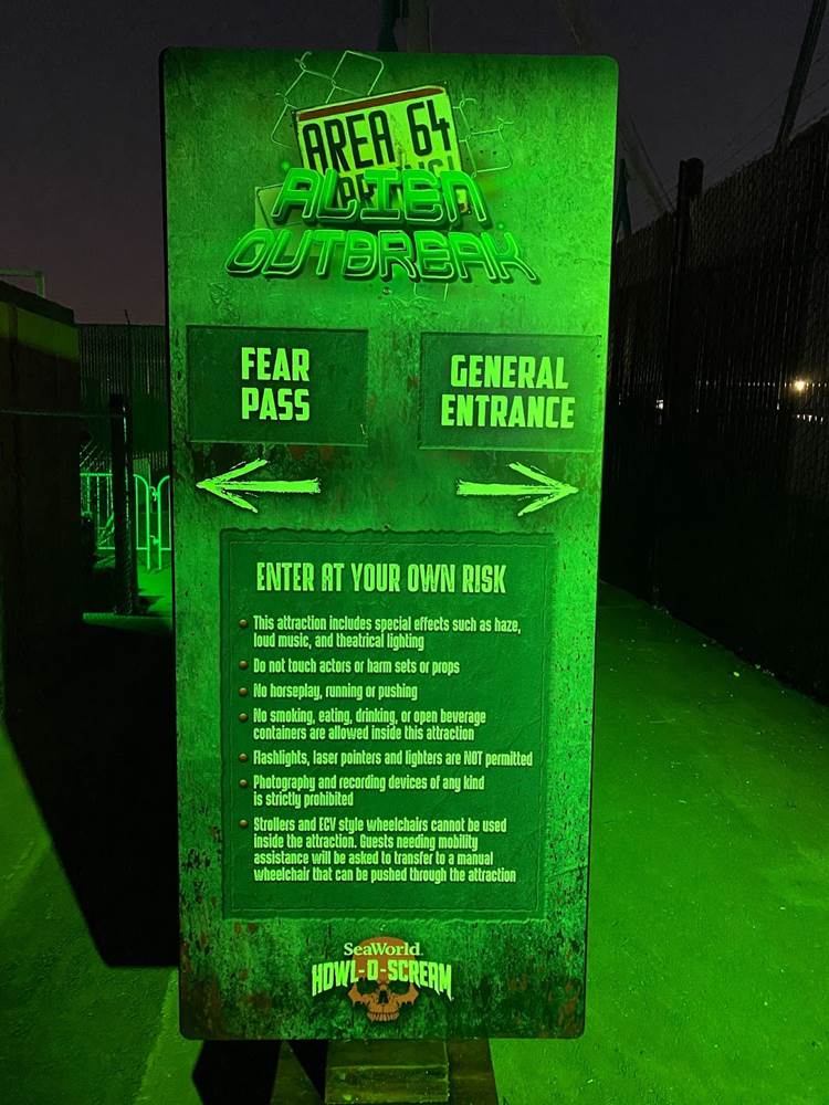 As far as the haunted houses themselves go, there were three returning options from last year– “Nightmare Experiment" (think the hospital from hell), “Simon’s Slaughterhouse" (similar to the Red Barn from Knott’s Scary Farm past), and “Death Water Bayou" (with a New Orleans theme)-- plus two new examples: “Circus of the Damned" (self-explanatory with lots of creepy clowns, though it does offer a tiny speakeasy bar within the maze with a secret password needed to get in) and “Area 64: Alien Outbreak" (this was probably my favorite of the houses this year, old or new). Like I mentioned in 2021, these haunted houses do have something of a prefabricated feel to them, and I wish SeaWorld would embrace its roots and put together more aquatic-themed mazes to fit the park’s name and overall ambience. “Death Water Bayou" was a good start last year, but instead the park chose to go down a more generic Halloween route instead of exploring those possibilities.