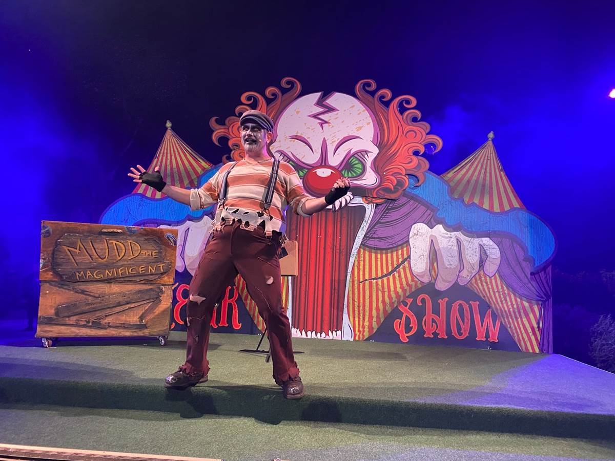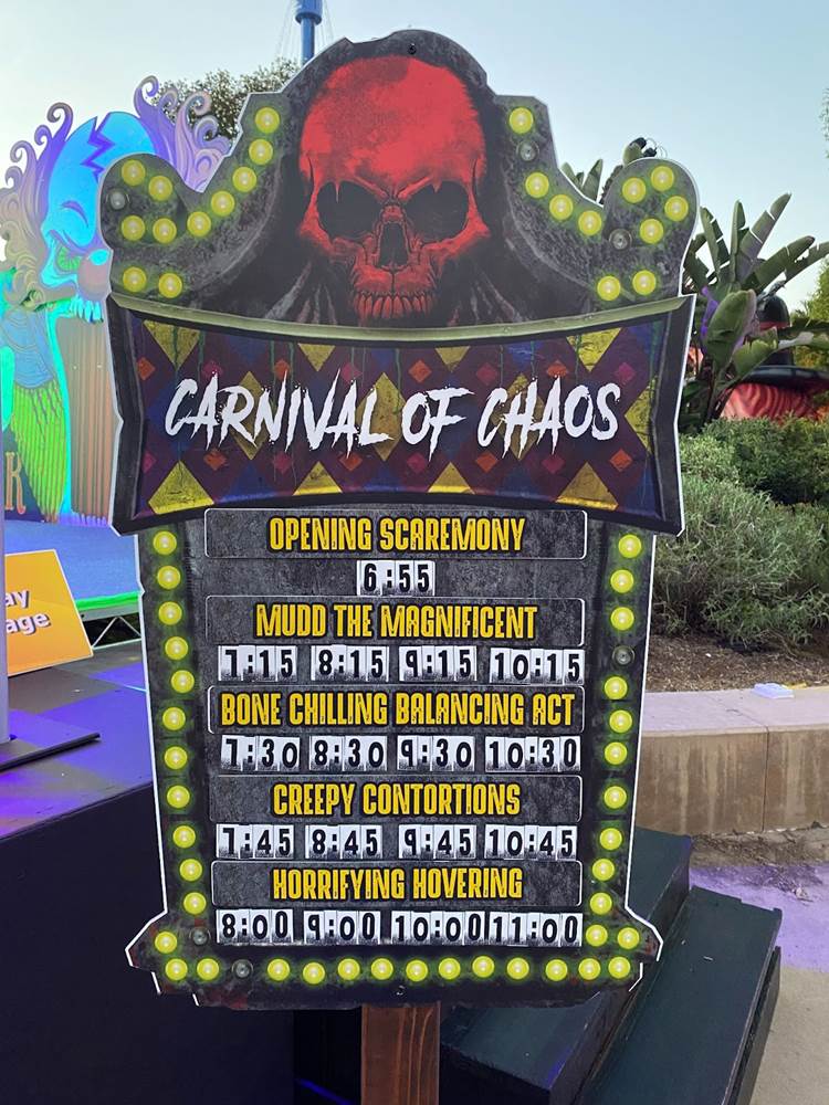 As with 2021, this year’s Howl-O-Scream event began with an “Opening Scaremony" near the park’s entrance, during which we met a number of the scare-actors in character, visited the nearby themed bars, plus got a good look at some of SeaWorld San Diego’s Halloween decorations while there was still some light left outside. On the “Carnival of Chaos" stage a variety of fun entertainment offerings were scheduled to entertain guests throughout the evening.