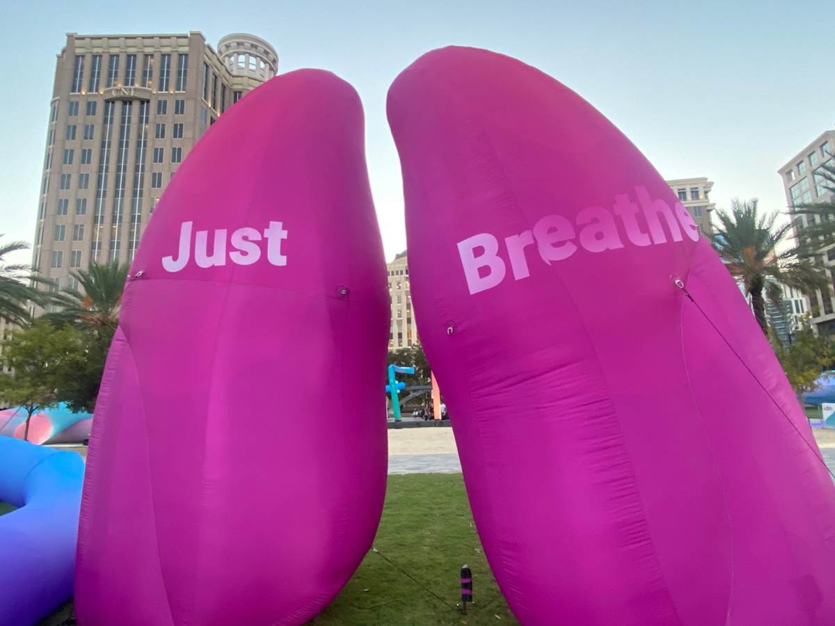 At Airplay, guests will adventure through a massive, inflatable garden, relax and connect in the shade of unique, inflatable installations, meet larger-than-life inflatable characters and so much more. Inflatables are twisted in creative ways, such as in the shape of a heart or lungs.