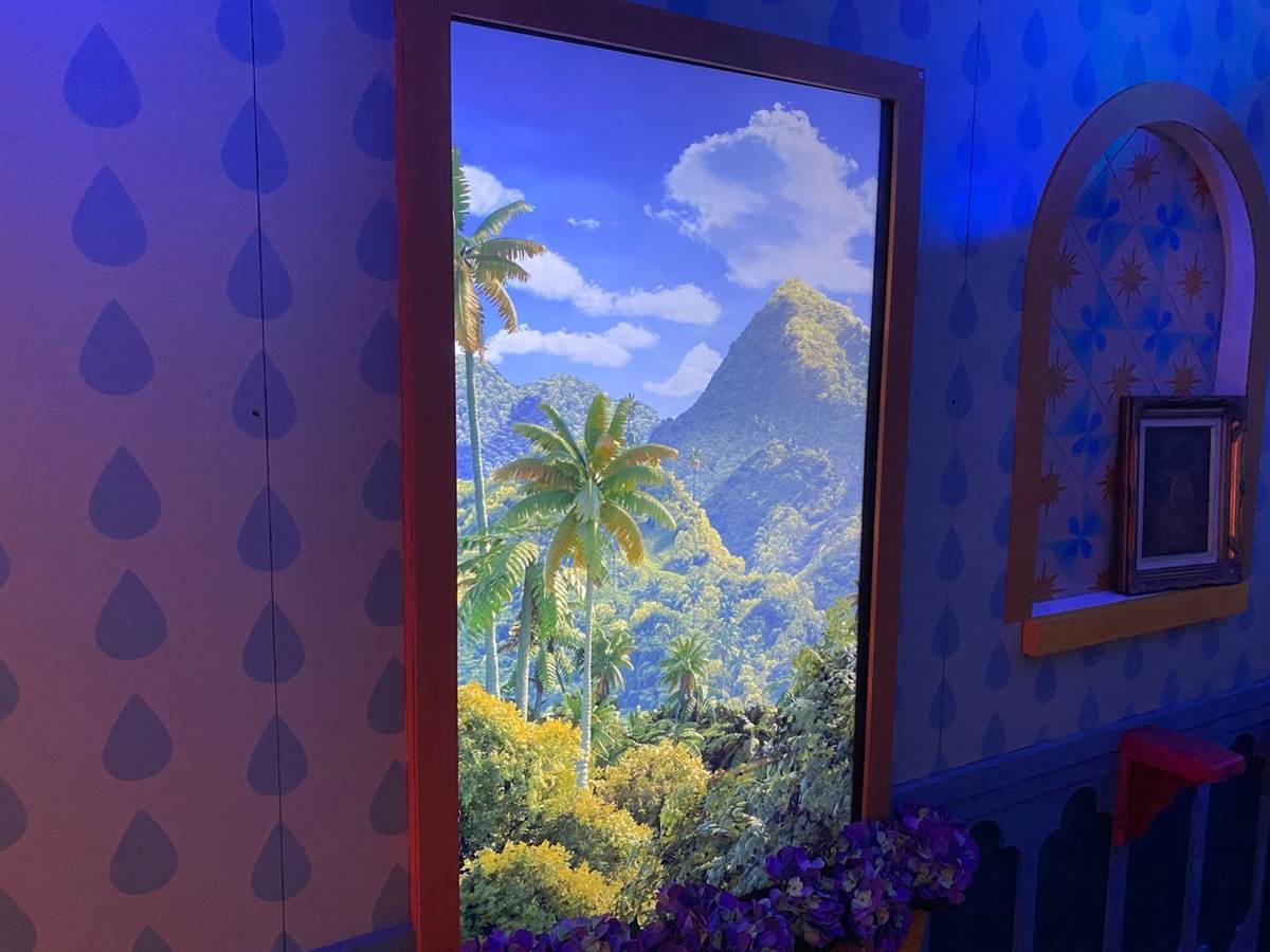 Once inside the Casita, you are surrounded by the doors to the various family member’s rooms, from climbing up and around Antonio’s rainforest, spinning through Isabela’s flower-filled room, sliding down into the Courtyard and more. We even get to see into Luisa and Pepa’s rooms, not seen in the film, offering a glimpse of the beautiful scenery of Colombia.