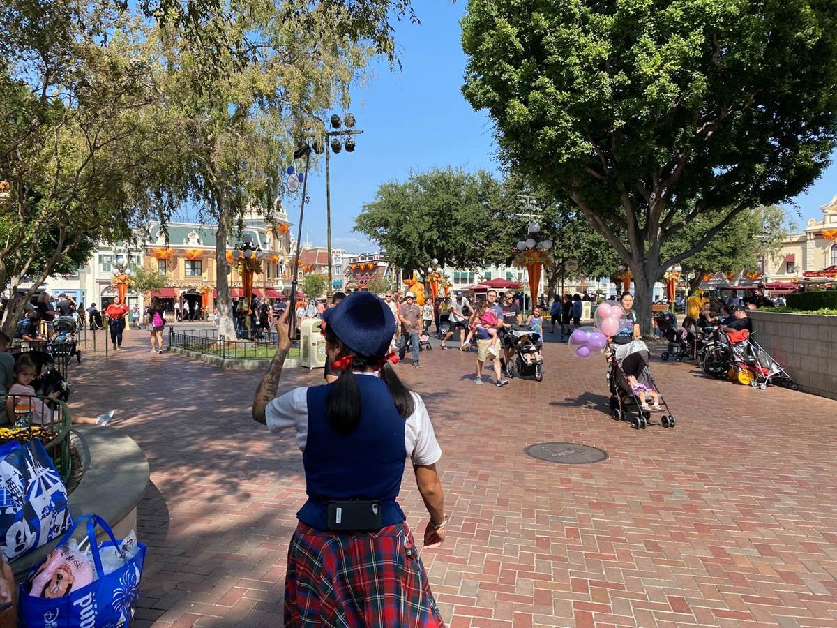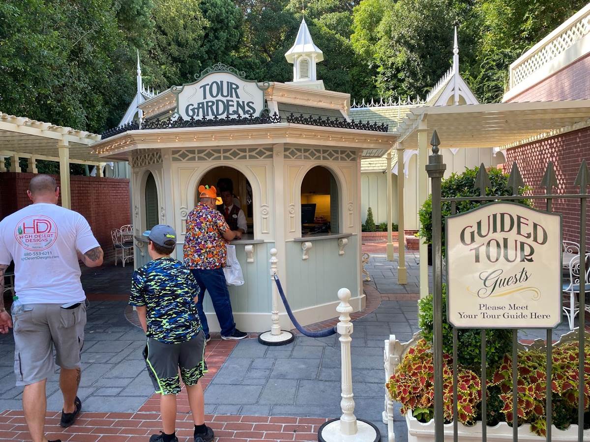 I checked in 15 minutes before my tour began at the Tour Gardens next to Disneyland’s City Hall in Town Square. I was provided with a credential for “Walt’s Main Street Story" and told that a treat would be given to all guests at the conclusion of the tour. As someone with celiac disease, I was very glad to learn that a gluten-free option was available as an alternative for the treat. There were also optional Disneyland-branded fans available for guests who might be feeling hot, as at least half of the tour takes place outside.