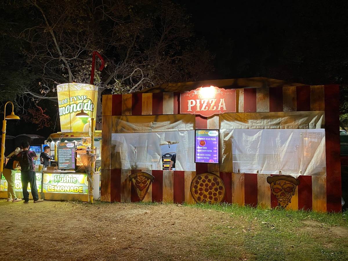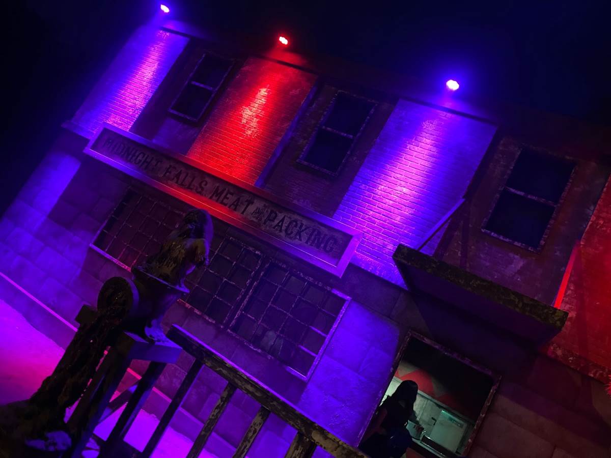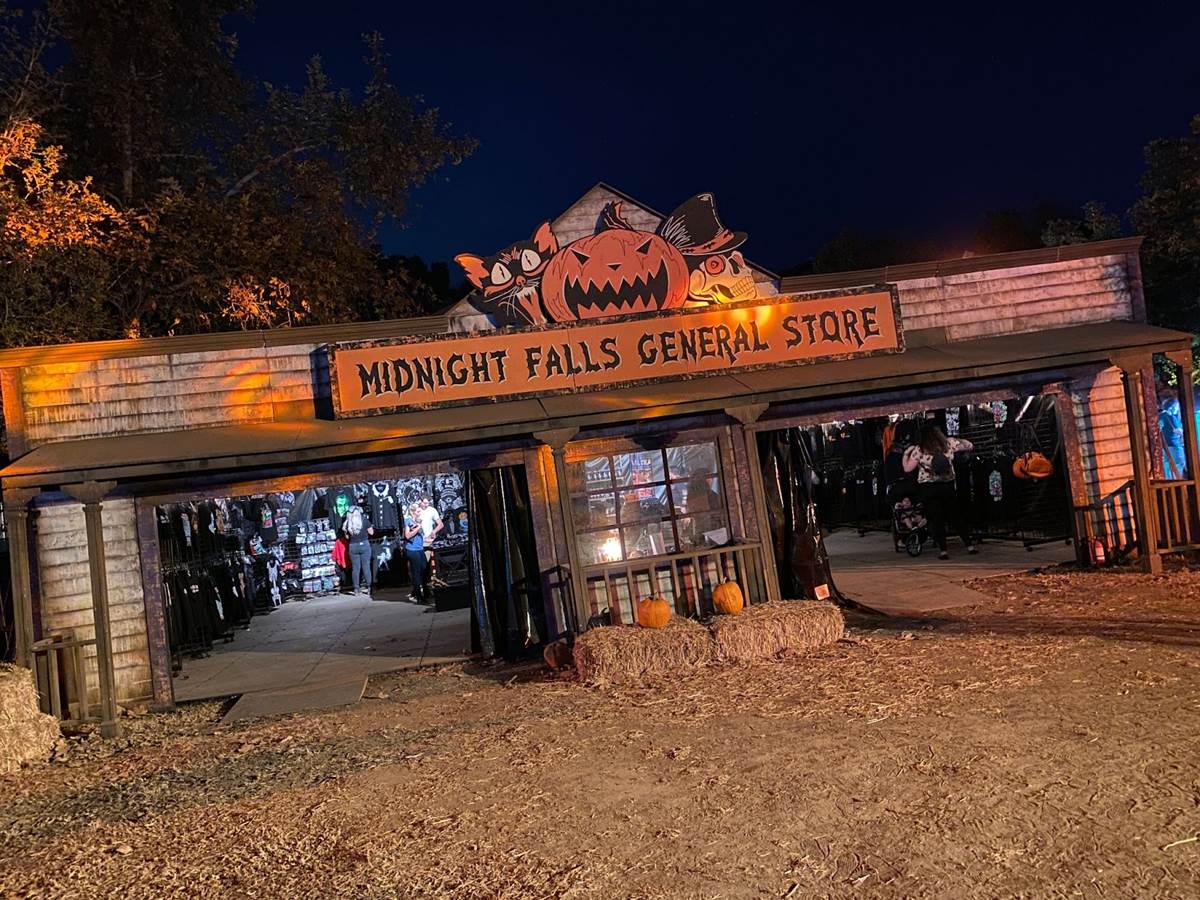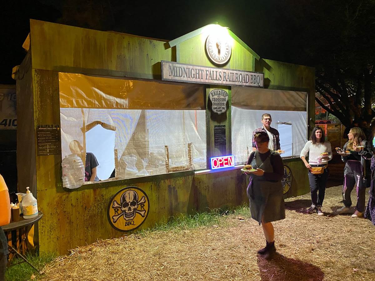 From the moment I walked through the entrance, I was impressed by Haunted Hayride’s decor, which this year is themed to the fictional small town of Midnight Falls, complete with a General Store where guests can pick up all manner of Halloween-related goods and spooky apparel. There’s a photo op tied in to sponsor Huluween, but otherwise everything is designed to fit into the Town Square of this bewitching little burg. There’s a variety of food stands with names like Midnight Falls Railroad BBQ and a stage set up for performances by some very interesting acts to entertain attendees between haunts.
