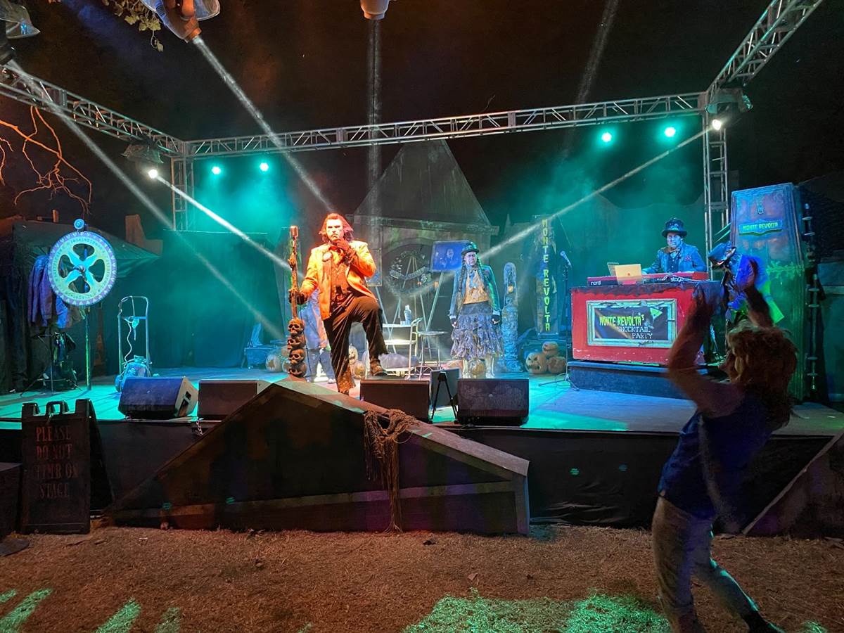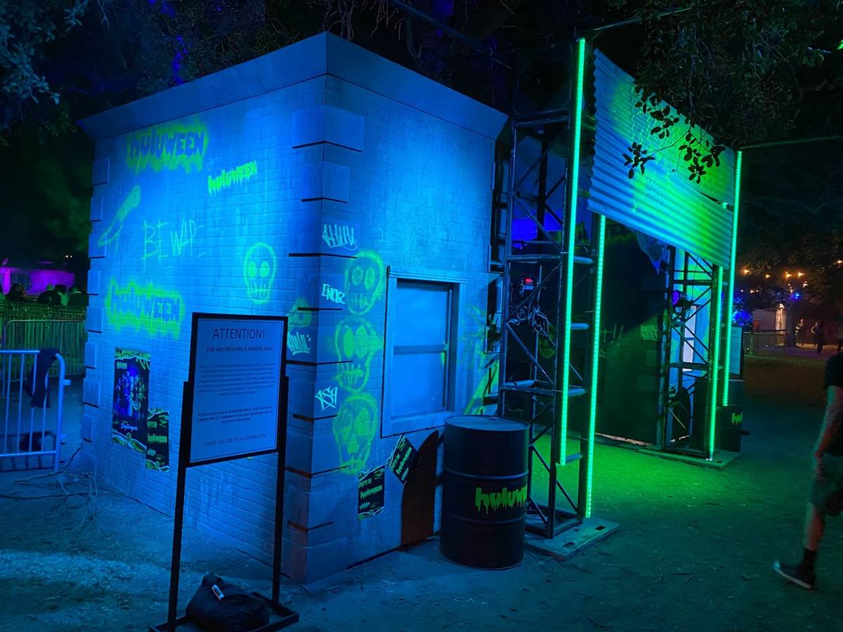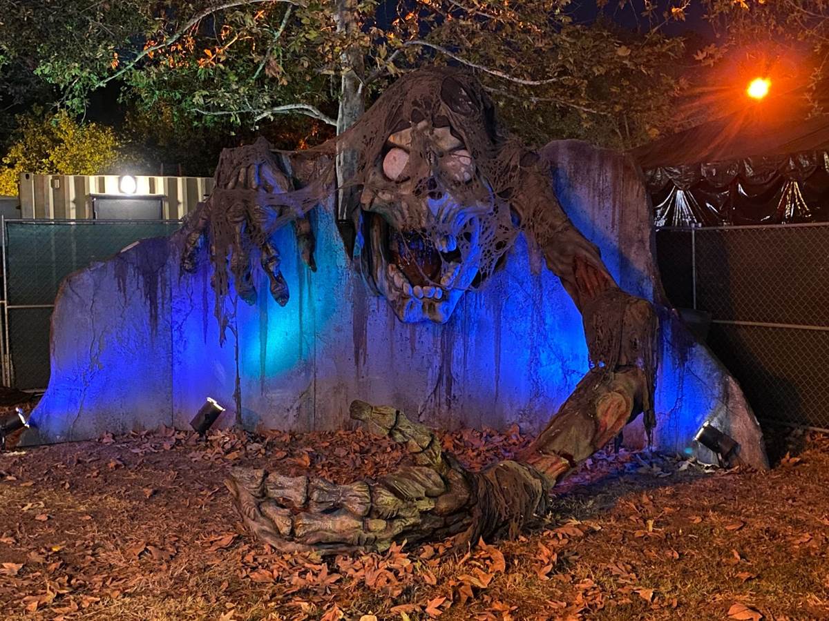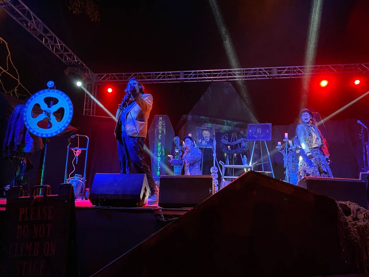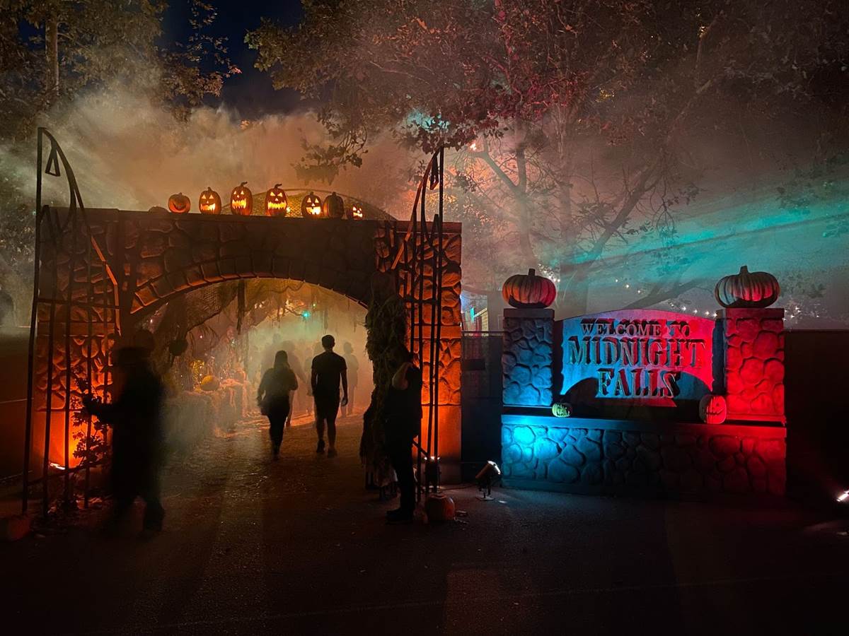 From the moment I walked through the entrance, I was impressed by Haunted Hayride’s decor, which this year is themed to the fictional small town of Midnight Falls, complete with a General Store where guests can pick up all manner of Halloween-related goods and spooky apparel. There’s a photo op tied in to sponsor Huluween, but otherwise everything is designed to fit into the Town Square of this bewitching little burg. There’s a variety of food stands with names like Midnight Falls Railroad BBQ and a stage set up for performances by some very interesting acts to entertain attendees between haunts.