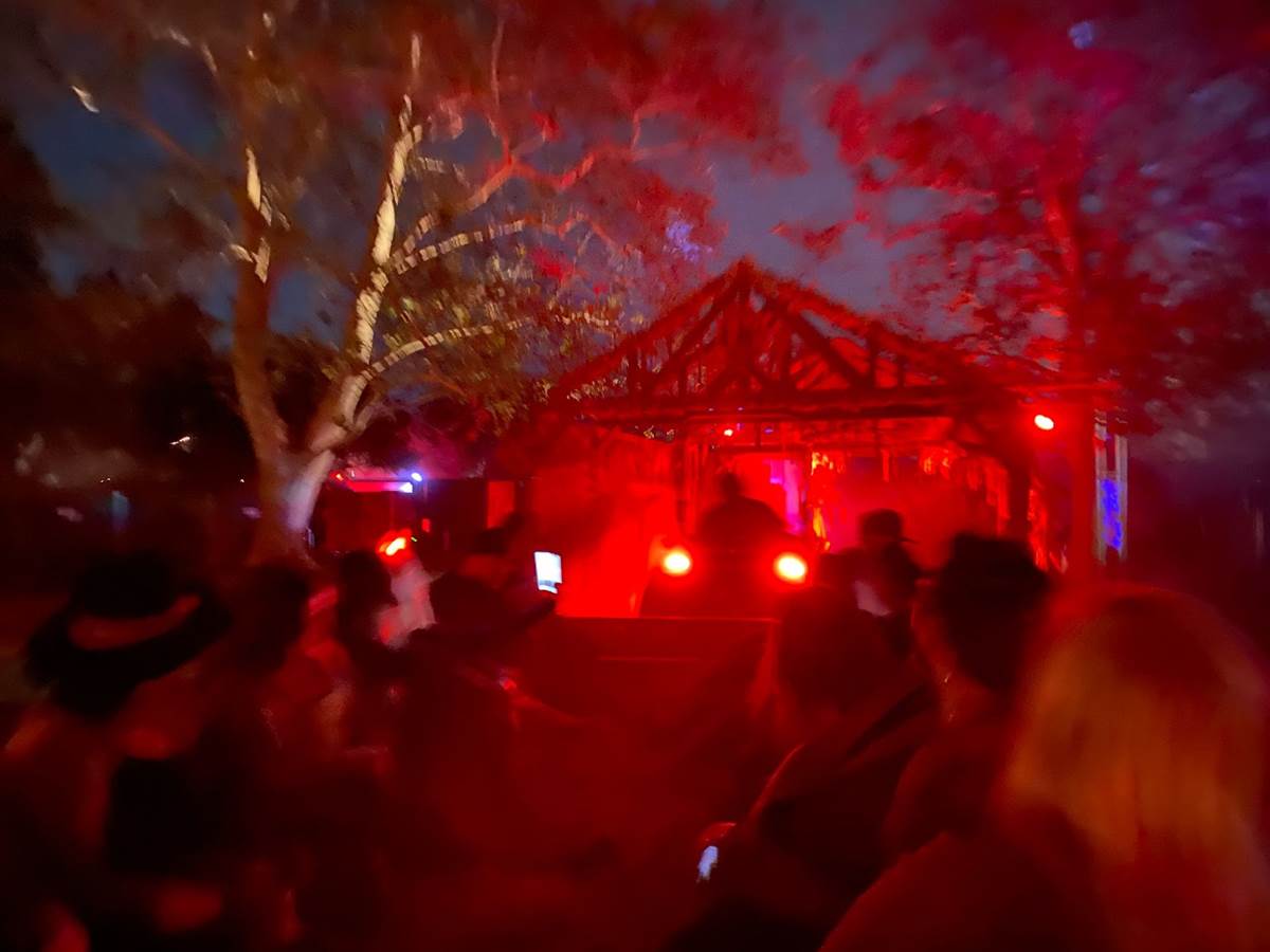 Once guests have boarded and the ride takes off from the loading area, the Haunted Hayride is a roughly ten-minute experience that goes around some of Griffith Park’s appropriately wooded areas. There are well-executed setpieces themed to different Halloween-type genres like demons and aliens, and live actors who will jump out and scare riders, not to mention approach the tractor, sometimes banging on the vehicle’s chassis, though they never breach the perimeter in which the guests are seated. But my favorite part of this entertaining ride-through attraction was definitely the several different kinds of mechanical effects used to bring specters, goblins, and ghouls to life around the track.