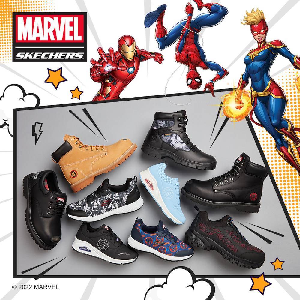 Marvel’s greatest heroes can now join you all day, every day at home and on the job. Skechers has launched its first collaboration with Marvel to bring the Avengers and Punisher to a collection of work shoes and boots designed for a variety of tasks.