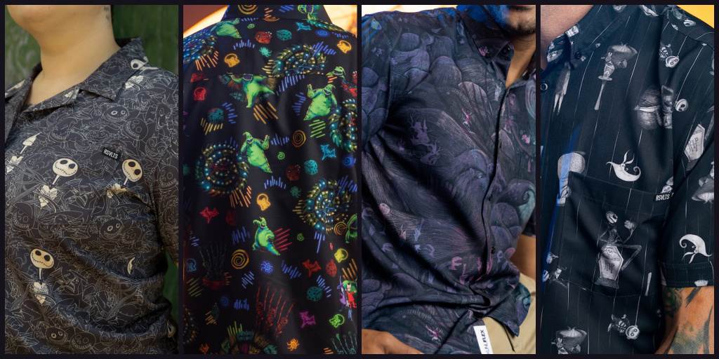 Bring the fun of this double holiday movie to your wardrobe with unique button down shirts from RSVLTS. Oogie Boogie, Jack and the rest of the gang take the spotlight and hide out in mysterious patterns on these awesome designs.