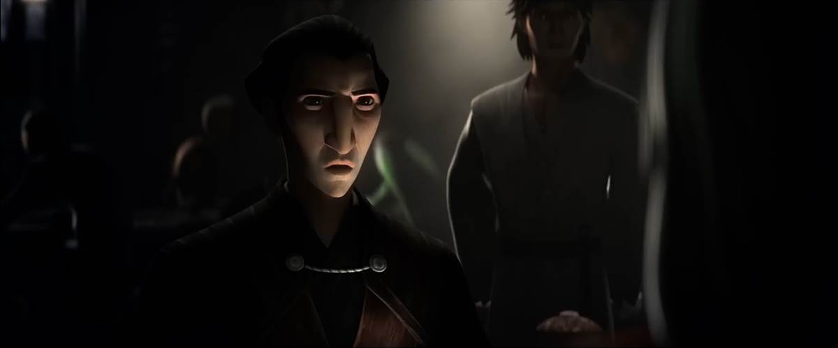 In the ensuing battle, Dooku loses his cool and unleashes a dark-side Force choke on Dagonet, with Qui-Gon unable to calm him down except by releasing the senator’s son. Several of the villagers perish in the conflagration, and we begin to see the seeds of Dooku’s dissatisfaction with the Republic being planted. “Corruption like yours must be eradicated," he says just before he snaps out of his rage-fueled trance and releases his Force hold on the senator. The son vows that he won’t allow the villagers’ suffering to continue, and Dooku and Qui-Gon both admit that they’ve learned a little lesson from each other. Here director Saul Ruiz (also from Star Wars Rebels) has delivered a somber and sobering entry into Tales of the Jedi, especially considering that much of the audience will know where both of these Jedi characters will end up later on in the timeline. Would it have been possible for Qui-Gon to interfere further in his Master’s life at this point and potentially prevent him from traveling down a dark path? It’s a question I think we’re meant to be asking, but the real point here is to begin to see things from Dooku’s skewed perspective as he is exposed to the lives of those who are not quite thriving under Republic rule. For those reasons, “Justice" is an atmospheric and effective chapter of Tales of the Jedi.