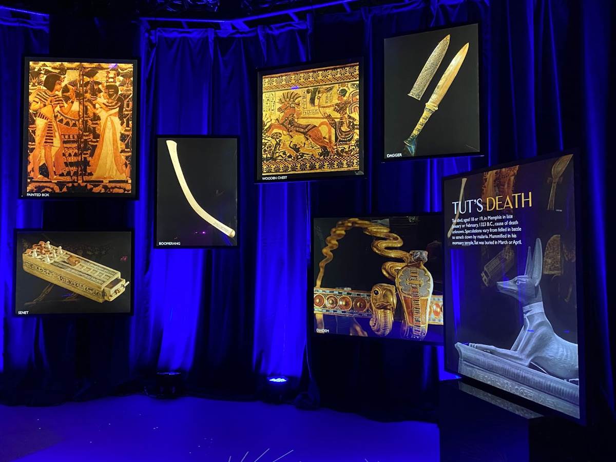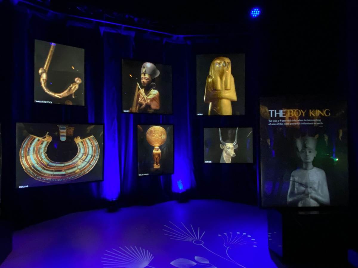 But the first real “wow" moment of the “Beyond King Tut" experience comes as you enter the room designed to replicate the experience of what it must have been like to discover the tomb itself. A virtual sarcophagus sits in the middle of the chamber while projection effects and informative historical narration explain the process of uncovering the site and how the area was laid out.