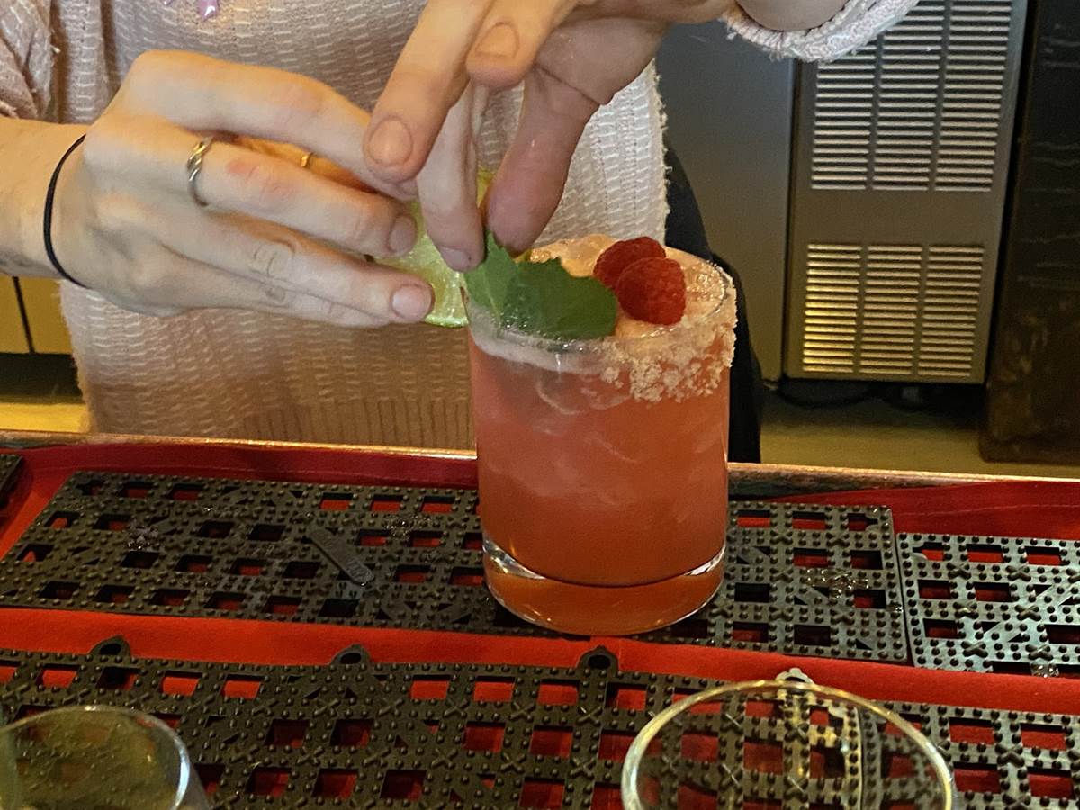 So, my mom is a survivor, and back in 2020, during the pandemic actually, back home in New Orleans, somebody approached me about entering a competition for breast cancer. It had to be a pink drink, and other than that, it could be anything that I wanted. And I immediately started thinking of how I could make it pink because I have a red dye allergy. So I have to be very careful with a lot of things. And I just started thinking about things that my mom and I used to make back whenever we were hanging out. And margaritas were always a big thing for us. So, trying to think of how I can make that as naturally pink as possible, I combined watermelon and raspberries and I cooked it all down and made it as pretty as I could, and somehow I ended up winning that competition...