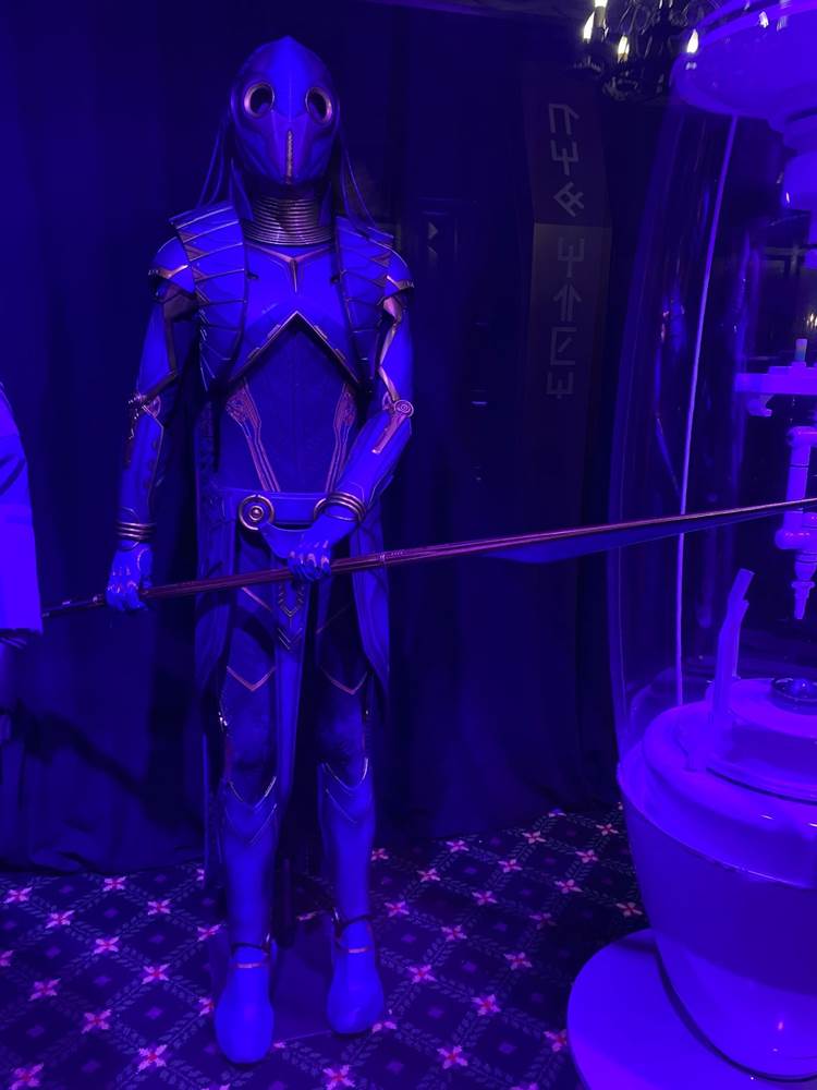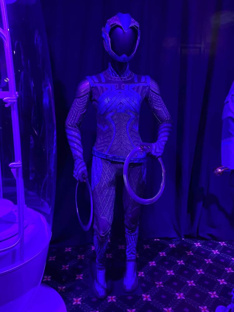 Getting back to the lower level, in addition to getting to see the costumes from the film up close, there’s also some Wakandan architecture on display. But the real highlight here is the opportunity to examine all the intricate detail that goes into creating the wardrobe from a Marvel Studios blockbuster like this one.