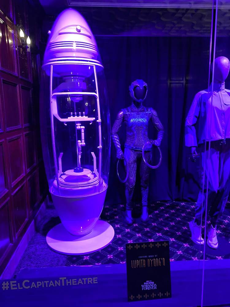 Black Panther: Wakanda Forever (the sequel to 2018’s smash-hit Black Panther) is now playing at El Capitan on Hollywood Boulevard, and the theater has a fantastic costume display from the film on its lower level.