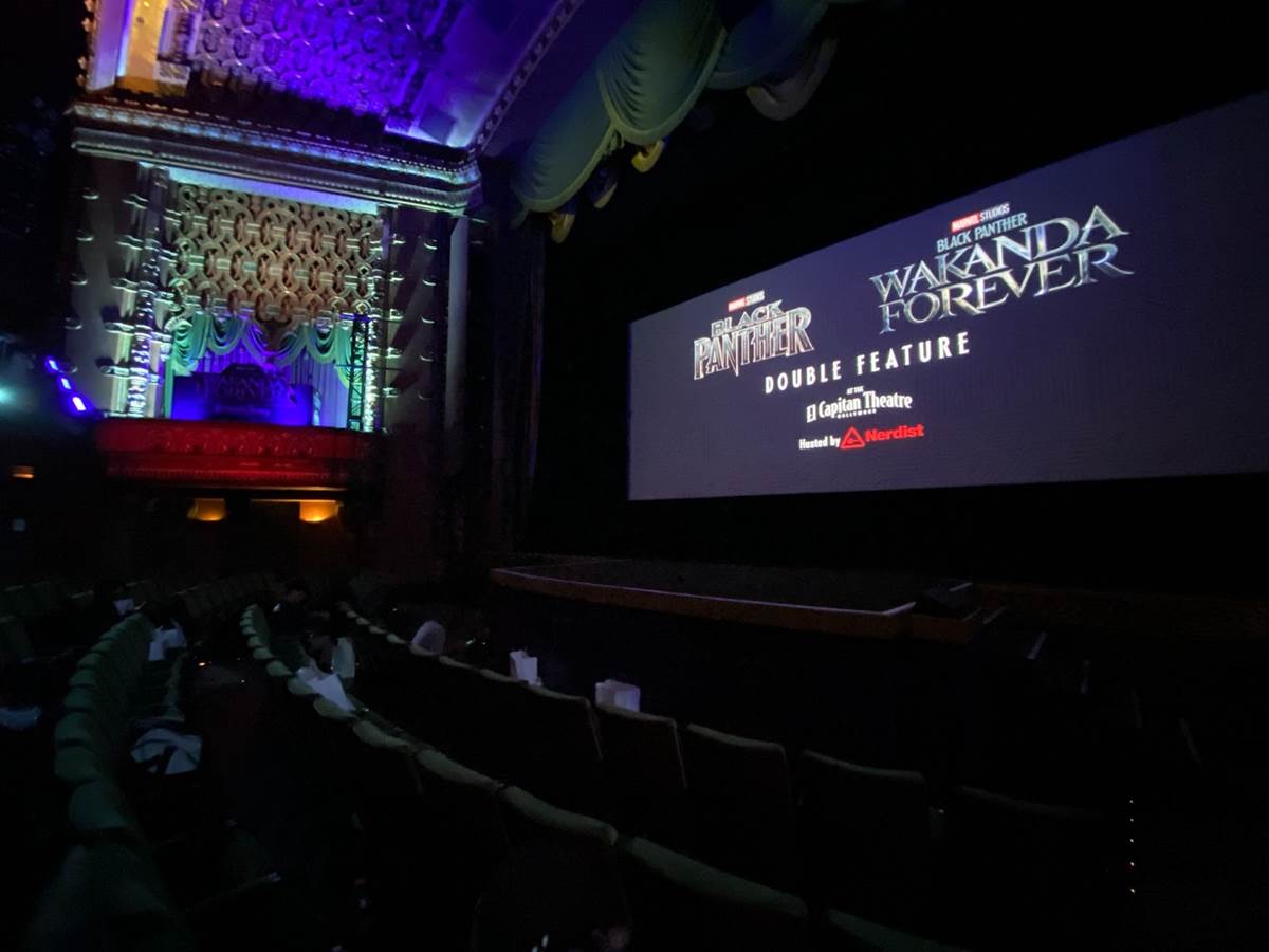 I had the chance to attend the opening-day double feature of Black Panther and Black Panther: Wakanda Forever, and between the films a DJ was spinning tunes as we waited for the sequel to finally arrive.