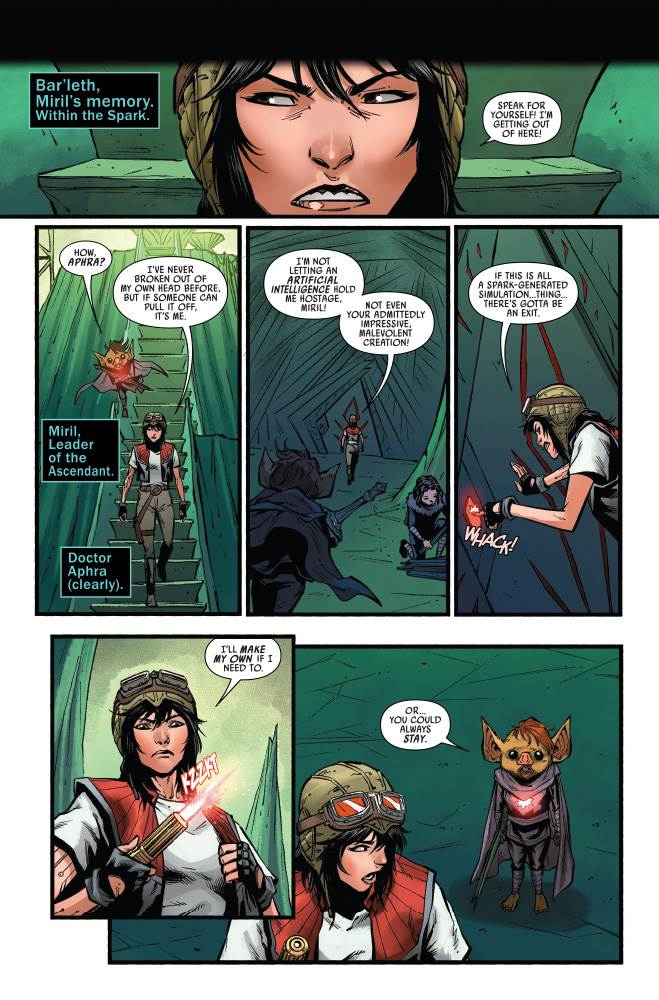 Star Wars: Doctor Aphra #26 begins with the title character still trapped within her own mind thanks to her body being possessed by the ancient artificial intelligence known as the Spark Eternal, created by the dark side-worshiping cult called the Ascendant.