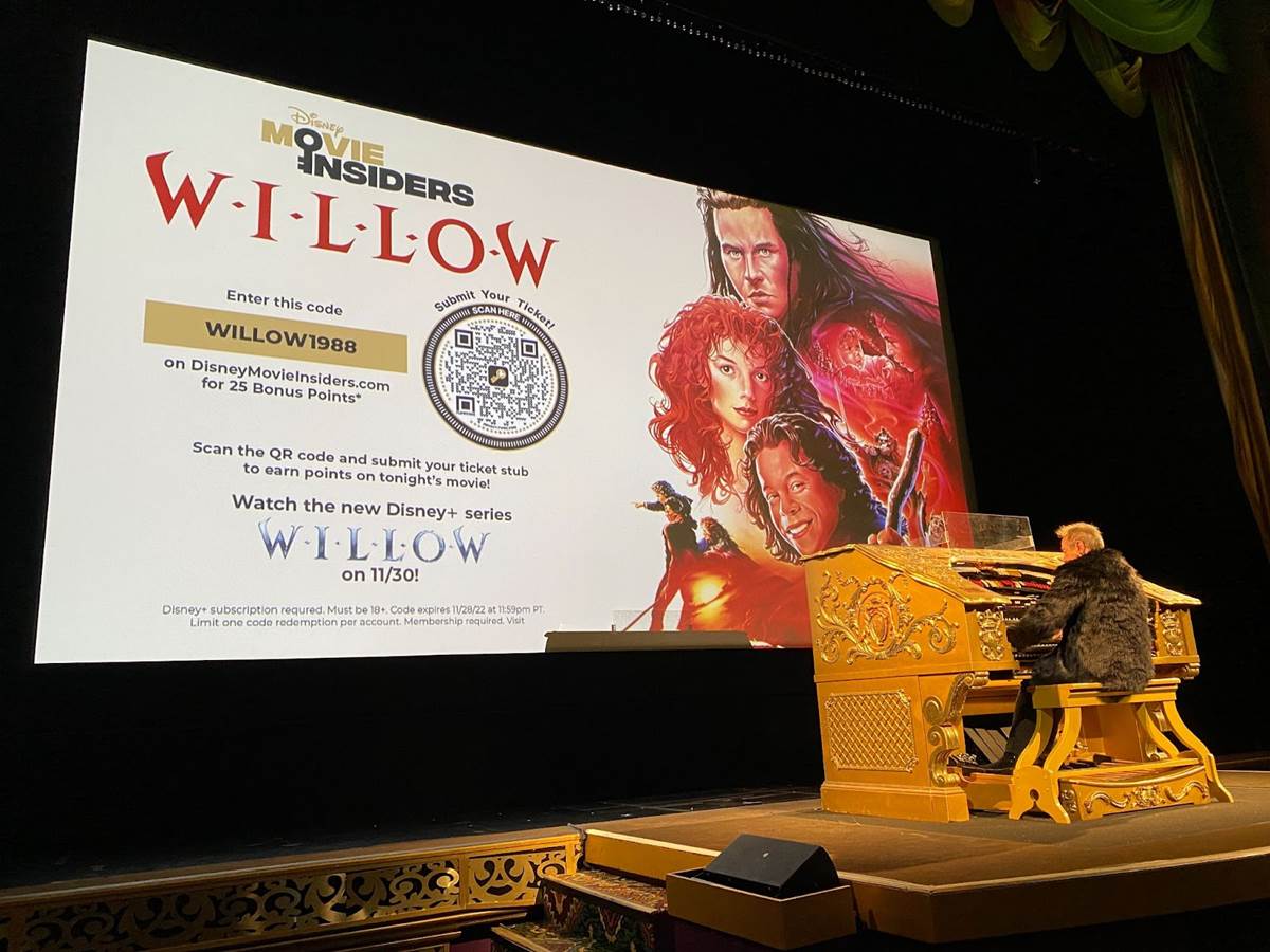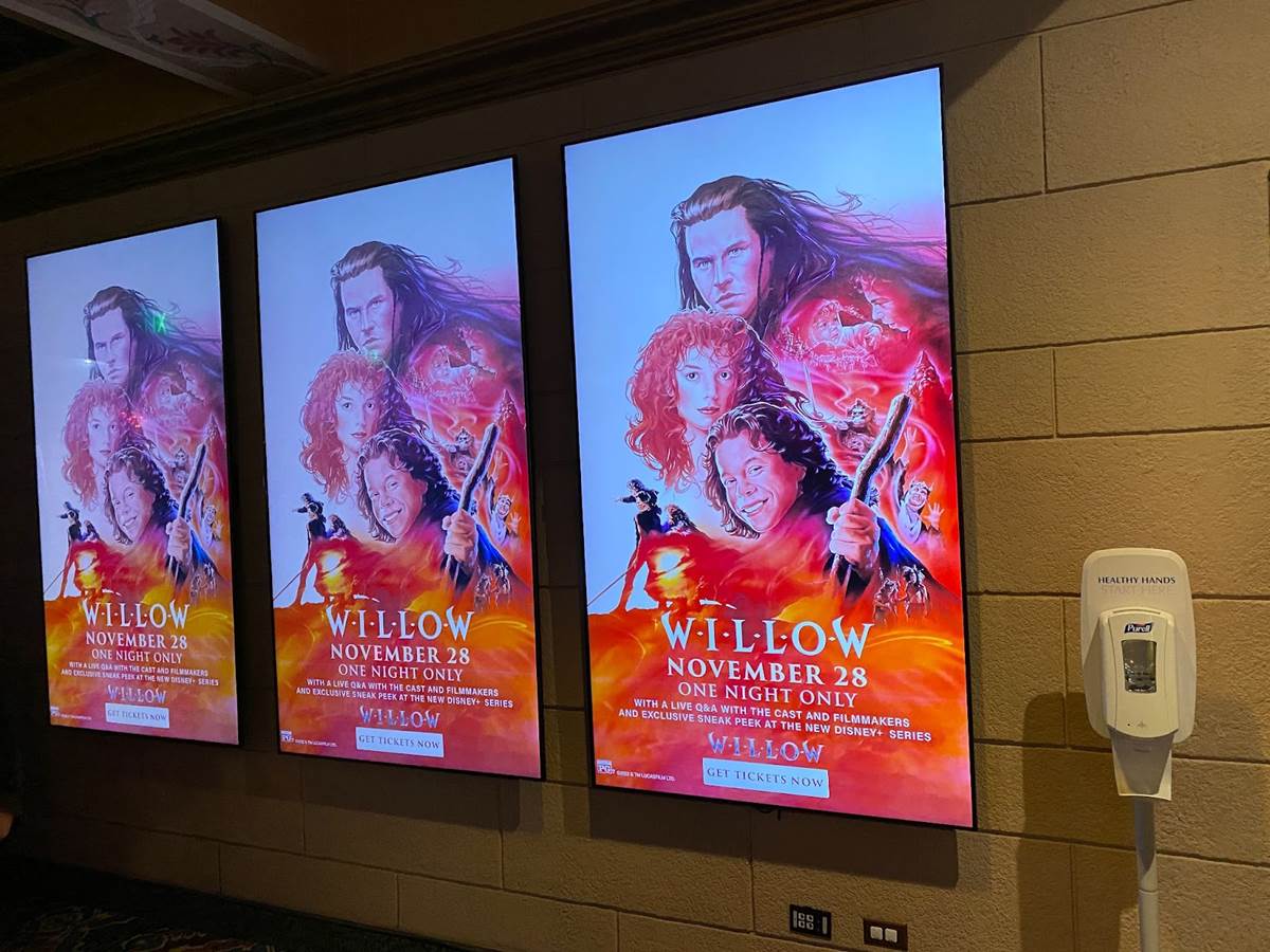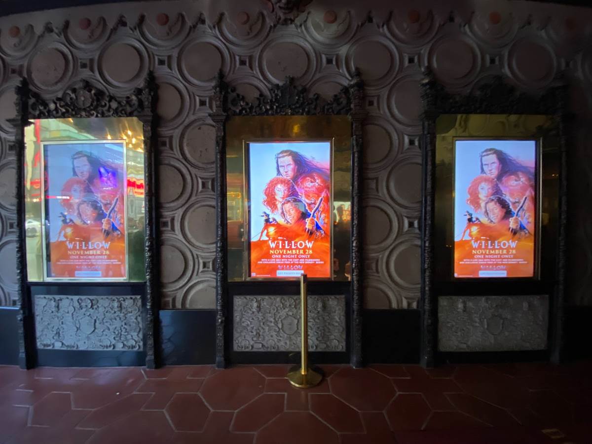 Rewinding time a couple hours, I arrived at El Capitan Theatre for its afternoon screening of the original Willow film to find the marquee and LED poster screens decorated with the 1988 artwork.