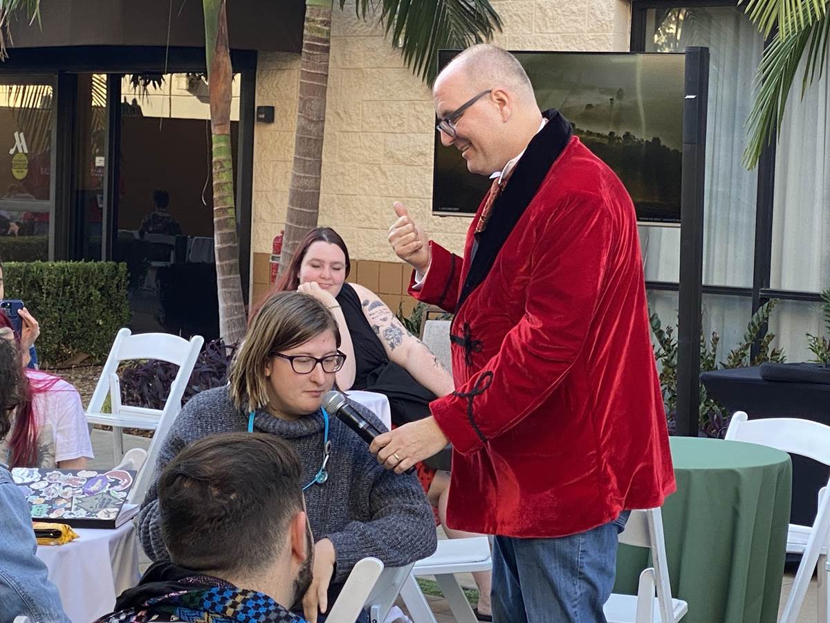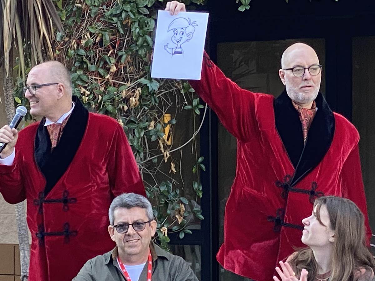 Another surprisingly fun session took place in the hotel’s outdoor quad area that featured the aforementioned Tony Bancroft and his brother, Tom, as they hosted an almost Whose Line Is It Anyway?-style game where three artists (two of them former Disney colleagues, and one student) designed characters based on suggestions from the audience.