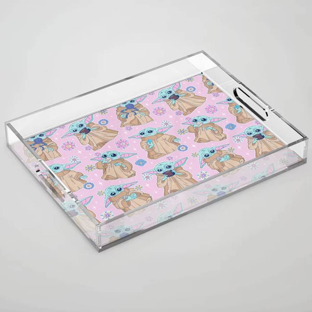 "Grogu Floral Pattern" by Dajon Acevedo Acrylic Tray by Star Wars | Society6