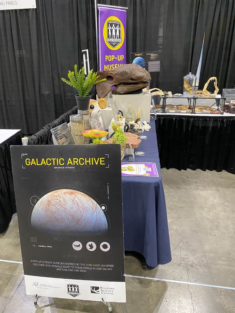 Exploring the exhibit hall floor, I came across what turned out to be my favorite booth: the Galactic Archive presented by the Raymond M. Alf Museum of Paleontology, which used fictional Star Wars creatures to teach about real-world evolutionary biology.