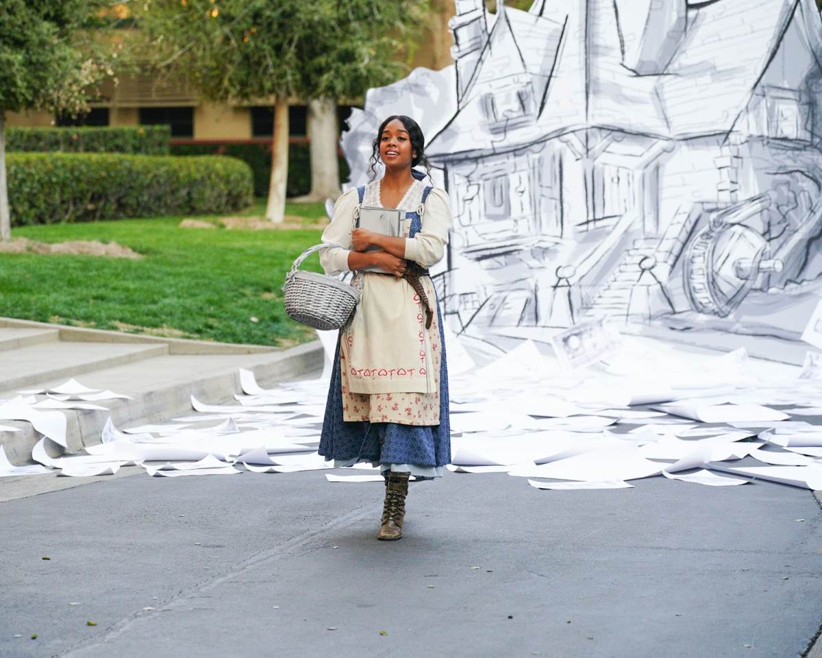 Unlike The Little Mermaid Live, this entire special has been pre-recorded and it appears that none of the singing is actually live. The Walt Disney Studios serves as the backdrop for “Belle," with H.E.R. moving through the lot and stopping at flat standees that represent drawn backgrounds from the film. This number includes a few cameos from the voice of Belle (Paige O’Hara), the voice of Gaston (Richard White), and composer Alan Menken, who later appears at the piano next to Shania Twain for the first performance of “Beauty and the Beast." As “Belle" concludes, the ensemble moves into one of the soundstages, where the largely LED sets await to bring the rest of the story to life.