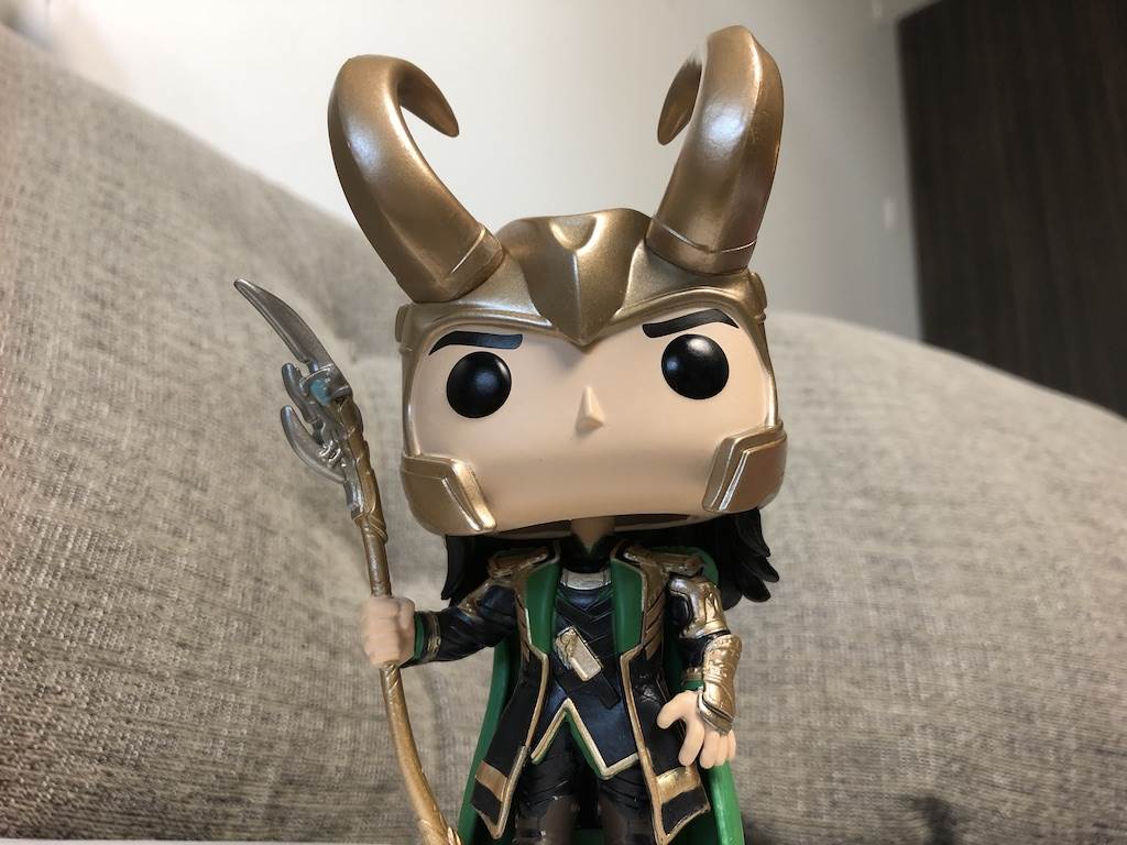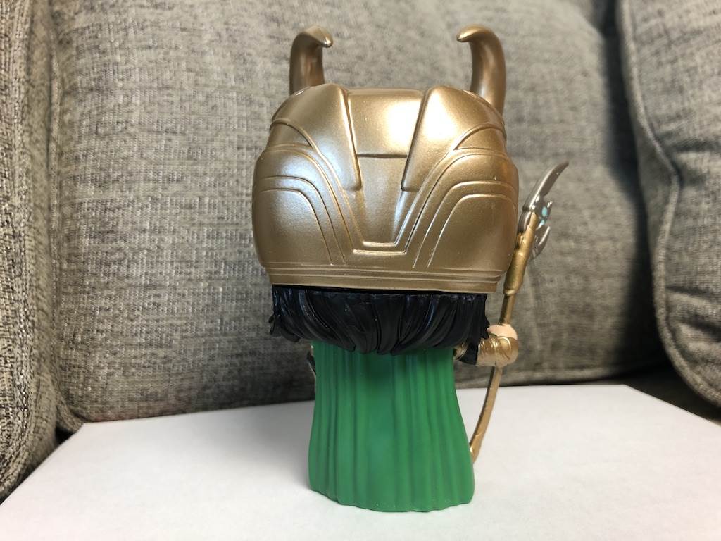 It’s always interesting to see something online and then actually have a chance to check it out in person, and Loki looks great. The figure is the standard size Pop! (about 4 inches tall, plus the height of his horns) and represents the character from his appearance in The Avengers where he was the main villain.