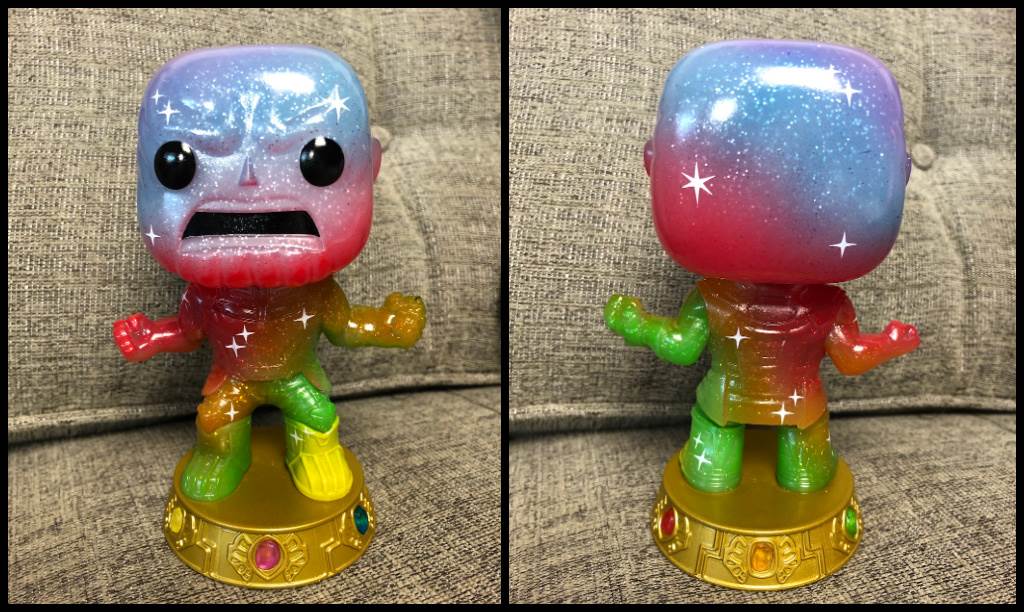 Many casual Marvel fans had no idea who Thanos was when he was introduced in the end credits of The Avengers. Now he’s practically a household name! Last summer Funko revealed the Avengers wave of their Art Series which focused on the original Avengers—Captain America, Iron Man, Hulk, Thor, Haweye and Black Widow—presenting them in glittery translucent colors of the Infinity Stones. Entertainment Earth had the honor of completing the series with a rainbow colored Thanos who’d successfully gathered all six stones.
