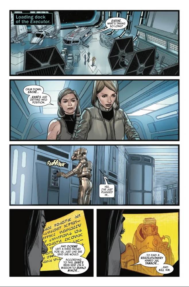 Now the handmaidens have come to Vader, in search of their friend and fellow double Sabé, who’s been working alongside the Dark Lord for a number of issues’ worth of stories now.