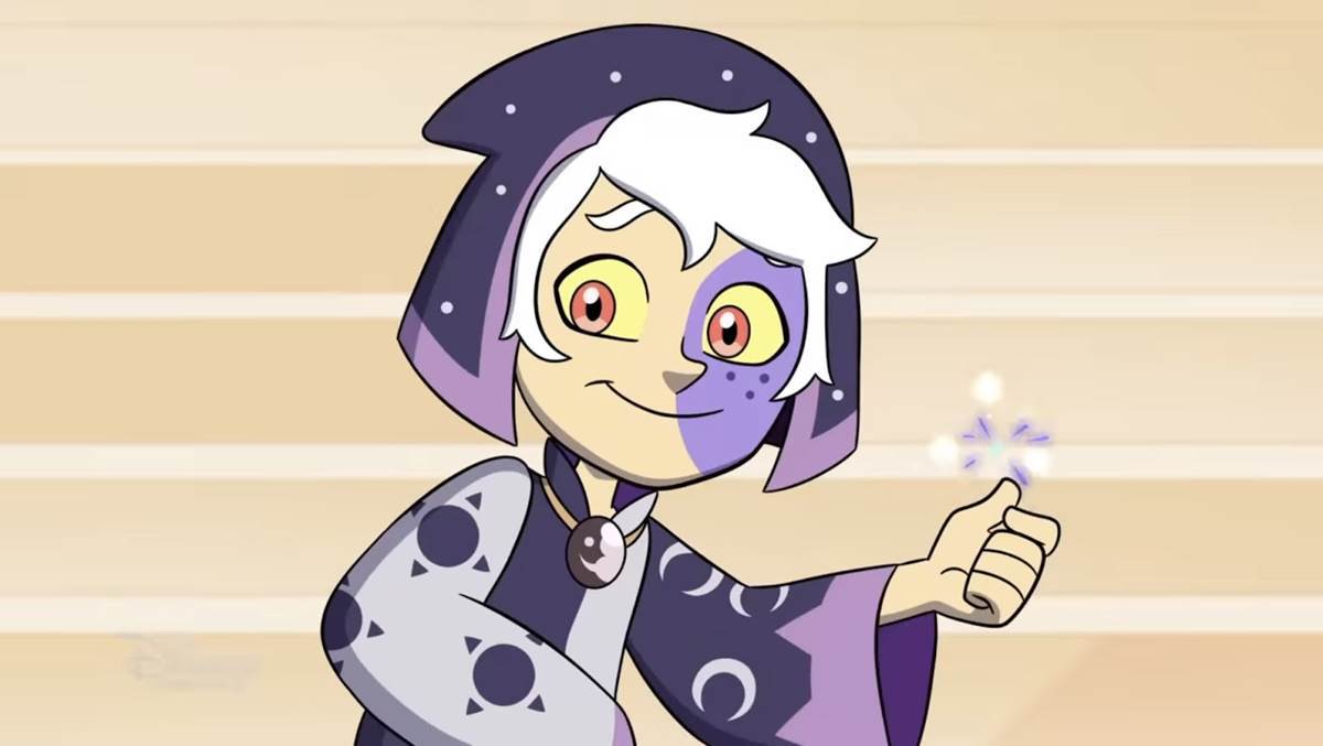 Luz and the gang are walking through Bonesborough and see the fantasy world of the Collector play out in front of them, with Terra Snapdragon playing a performance of The Owl Beast. Terra gives up and says she doesn’t want to play anymore and is turned into another toy for the Collector’s collection, and Willow sees one of her dads turned into a toy amongst the faux crowd. She squashes her emotions, even though Camila and Gus are well aware she’s pretending to be strong to save face. King takes the Collector back to the palace. There, he suggests feeding The Owl Beast and we see Odalia, Amity’s mom, doing what she can to serve the new big bad in town. Tragically for her, she is relegated to mom duties, like making pizza bagels to feed the Owl Beast.