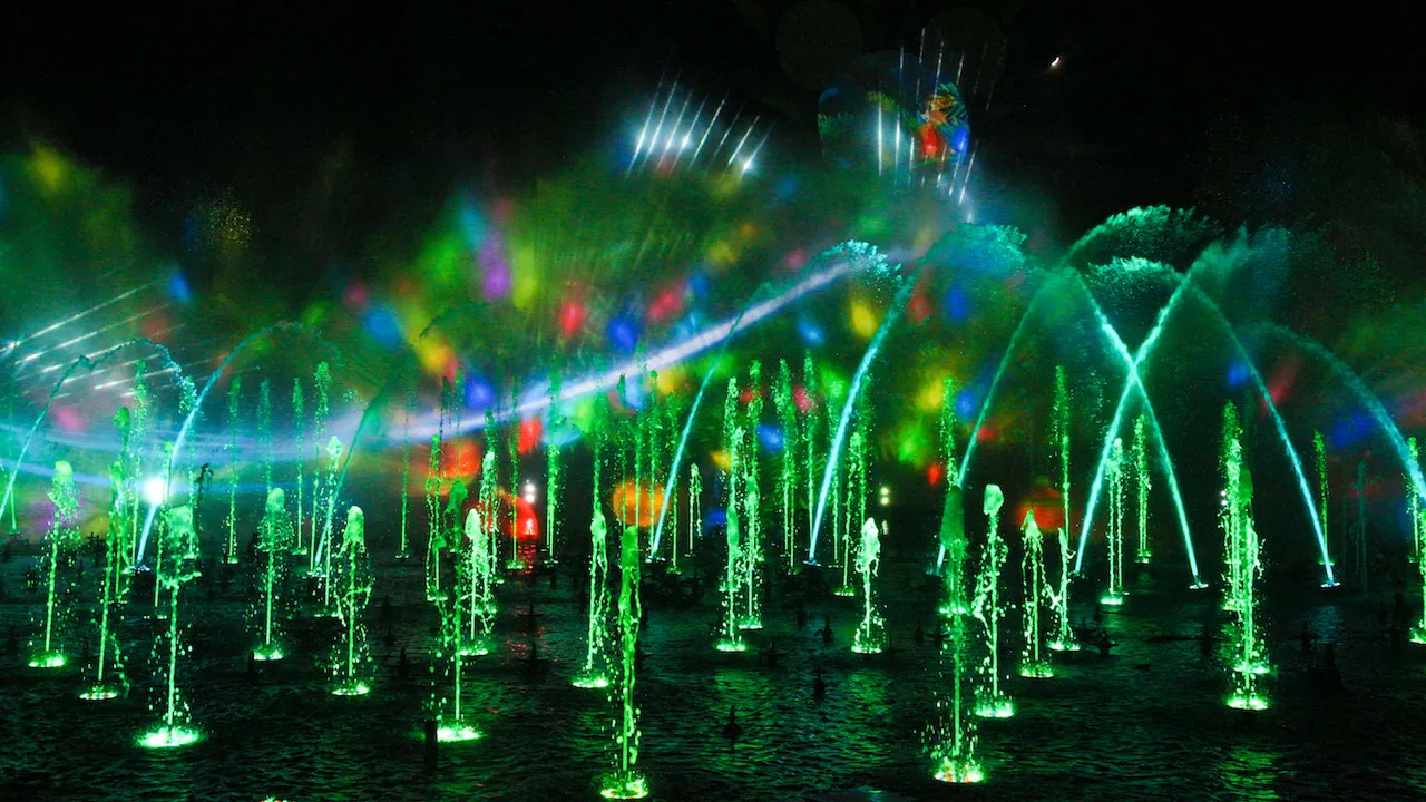 Telling the tale of “Little Squirt," a fountain who couldn’t jump as high as the others, the audience would have followed this new liquid character into the colorful worlds of the Earth, Sea, and Sky. Acting as the playful spirit of Walt Disney himself, Little Squirt would take us into segments based on Disney and Pixar films, including Alice in Wonderland, Hercules, Wall-E, Pocahontas, and Fantasia 2000. From there, Little Squirt would basically disappear as glowing liquid beauty and music took over.