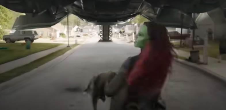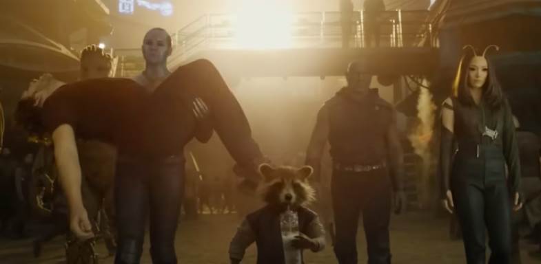 We get some more action shots of Drax fighting Warlock and the Guardians teaming up for what appears to be three different fights. In a scene reminiscent of the first film’s “12% of a plan" scene, Star-Lord asks his family if they’re ready “for one last ride." Some more repeat shots are then accompanied by Rocket’s “into the forever and beautiful sky" line we heard in the previous trailer.