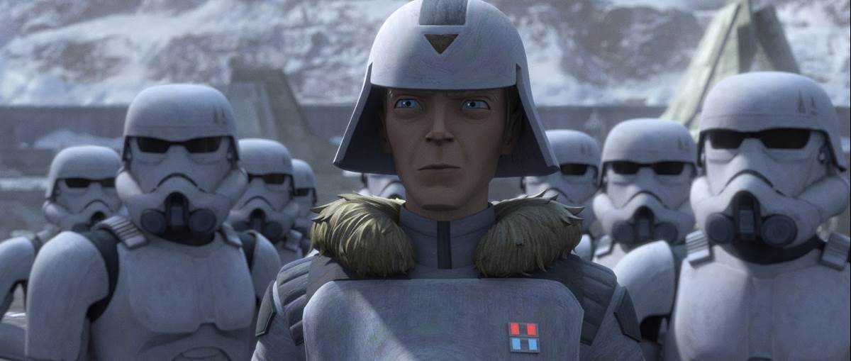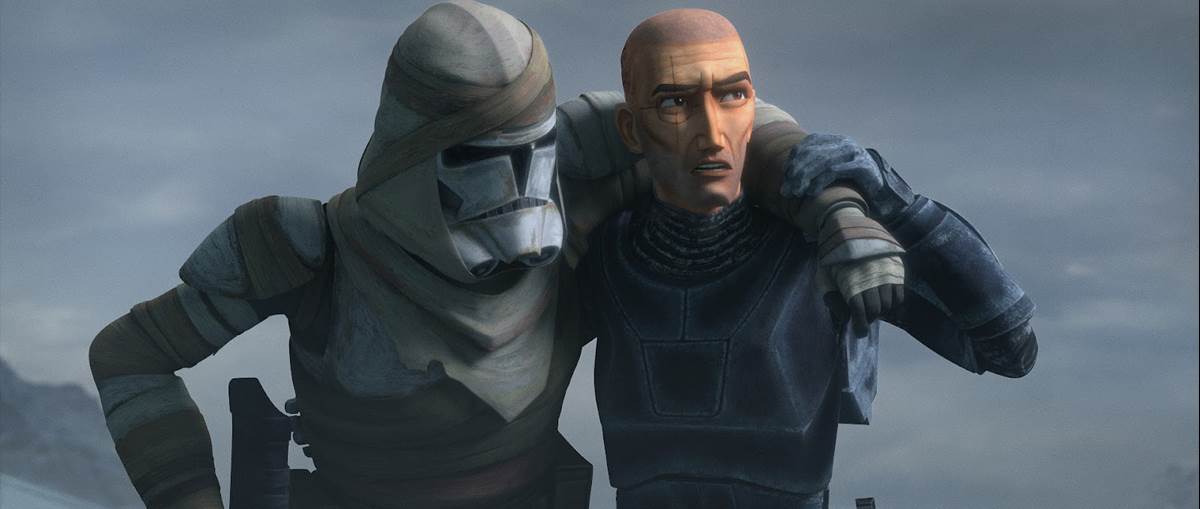 This week’s installment, entitled “The Outpost," sees Crosshair assigned to an inexperienced new superior officer named Lieutenant Nolan (video-game regular Crispin Freeman) on a mission to a desolate frozen planet, where they meet a disgruntled clone called Mayday (also Baker).