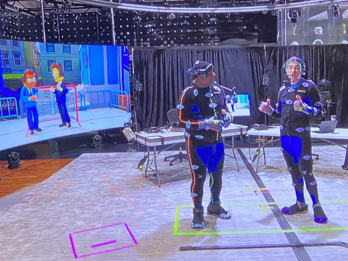 Behind the scenes, Carter and Weekes were broadcasting from ESPN's Bristol studio wearing motion capture suits, with their avatars animated in a Big City Greens style and interacting live with several of the characters thanks to show creators (and voice actors) Chris and Shane Houghton. Voice of Tilly Green, Marieve Herington, also appeared live, even singing the National Anthem as her character. At lulls in the game, we would hear calls and interviews with characters, including Jimmy the Zookeeper who somehow let all the animals in the zoo TWICE, complicating things at the game, and even Zamboni Tony, who took the ice in-between periods.