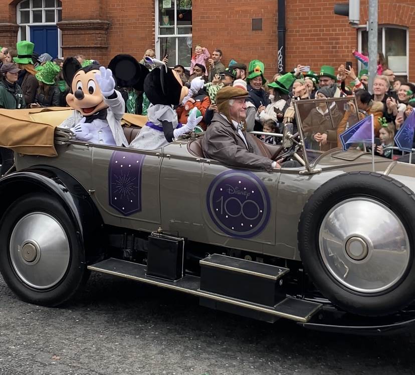 In a surprise visit today, Mickey And Minnie arrived as special guests in the St. Patrick’s Day Parade in Dublin, Ireland, in honor of Disney’s 100th anniversary. The iconic duo donned their brand new Disney100 platinum outfits for the first time( in Europe) along the parade route, entertaining up to half a million guests for over 2 hours.