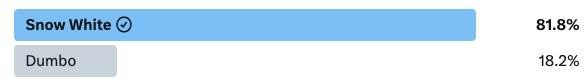 Before we move on to our next matchup, let’s take a look at our last result. The top-seeded film in the ‘37-’59 region took it home and it wasn’t close. With nearly 82% of the vote, Snow White and the Seven Dwarfs will unsurprisingly be moving on to the second round.