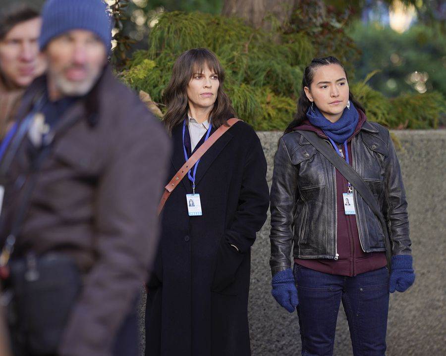 Gabriel (Pablo Castelblanco) may have said he wasn’t going to return to the paper, but Eileen (Hilary Swank) is not letting him quit. Knowing that he needs a push to come back to work, Eileen picks him up and brings him and forces him to come back to work. Wondering why he should come back Eileen tells Gabriel that he is a great journalist and only starting to discover his potential.