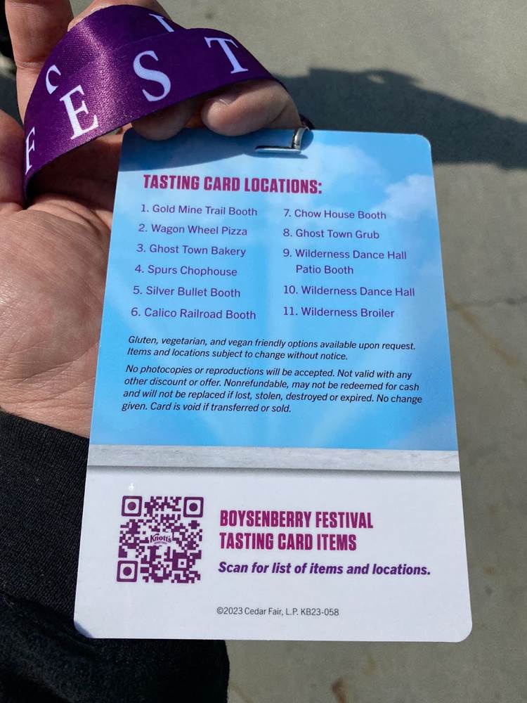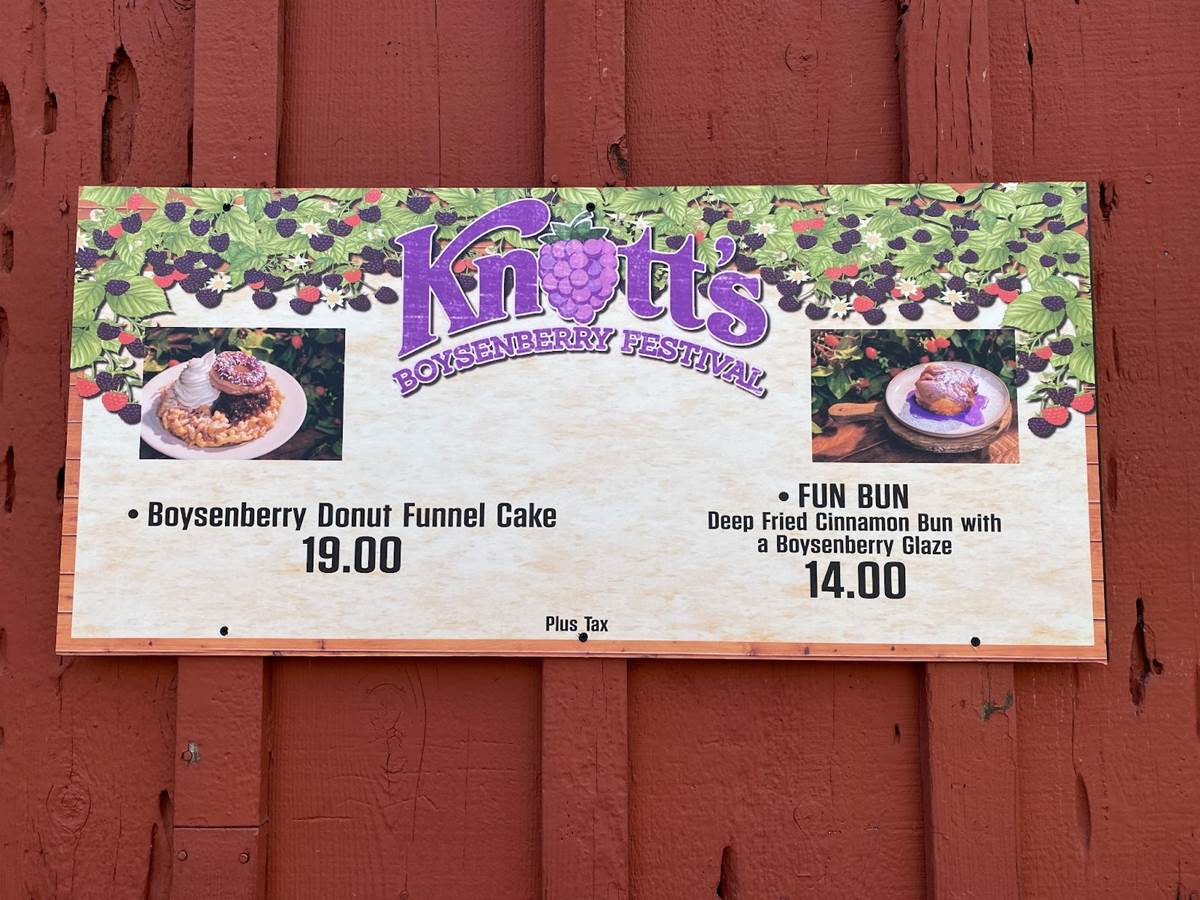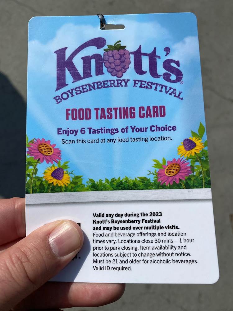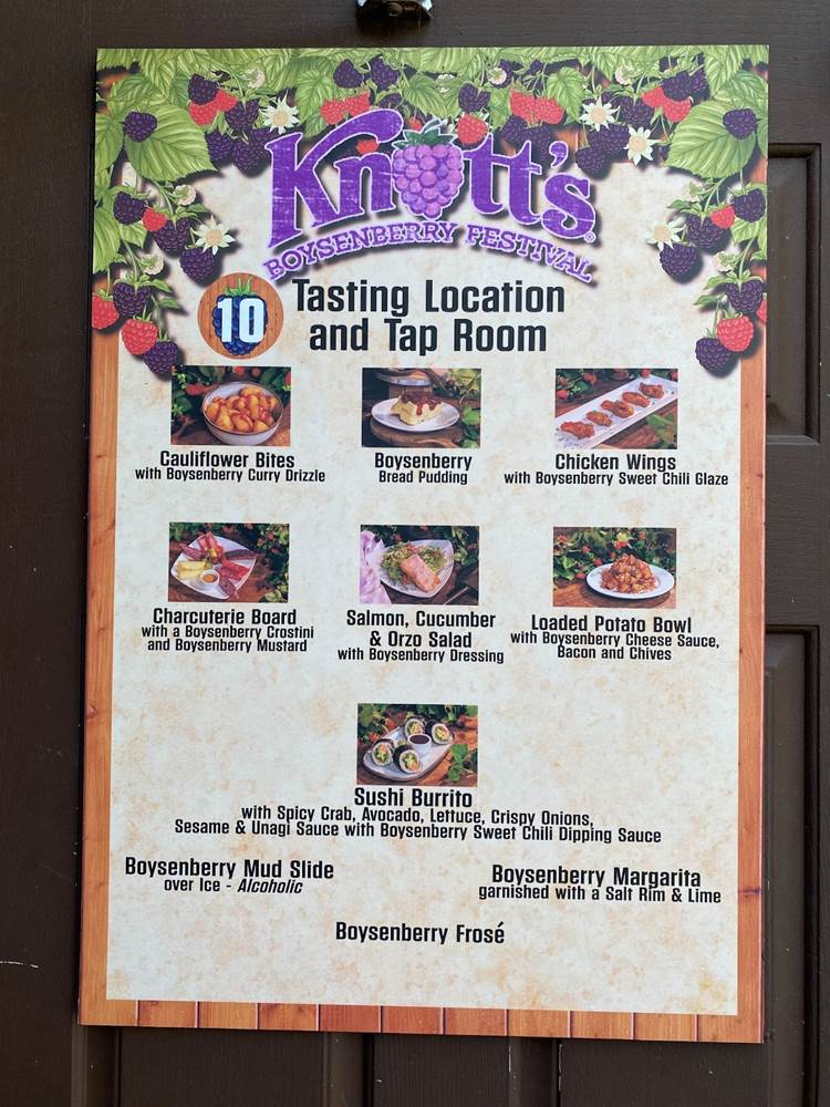 But one of the biggest draws of Knott’s Boysenberry Festival is inarguably the food, and as part of our media access to the event we were provided with a Food Tasting Card, which includes six specialty items from the delectable assortment of menus around the park. The cost of the card is $55 for regular guests.